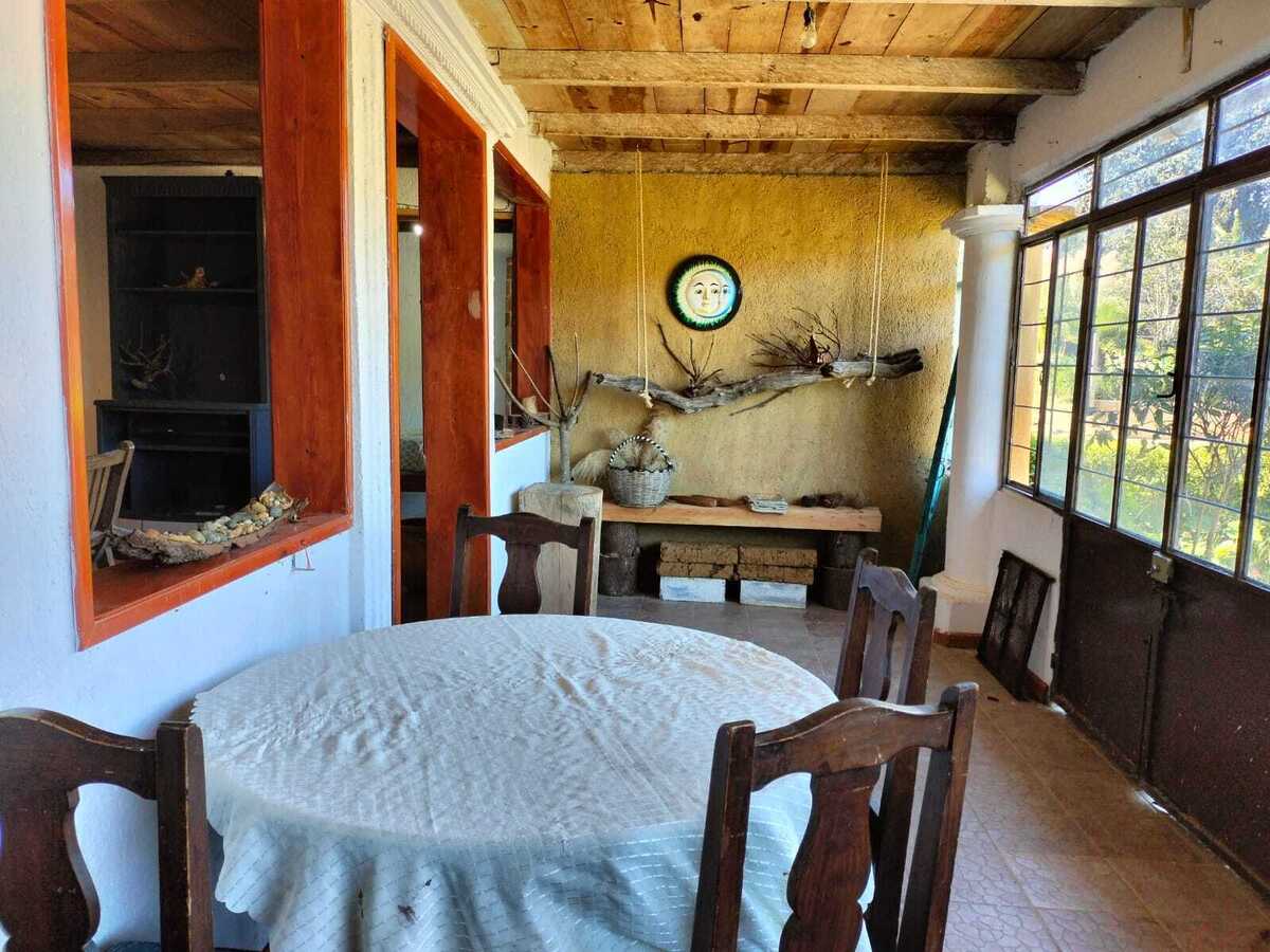 El Rancho cuenta con una casa de campo con 4 habitaciones con baño completo cada una, sala con chimenea, comedor y cocina. Dos cabañas con 2 habitaciones, baño completo, sala-comedor y cocineta cada una. Áreas con jardines, asador y una fuente tipo cascada que armoniza el lugar con las hermosas vistas a las montañas.