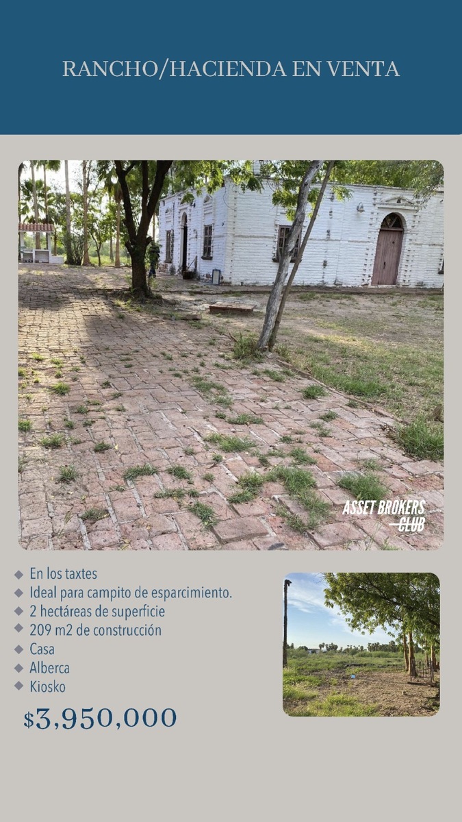 RANCHO TIPO HACIENDA EN VENTA En los taxtes $3,950,000 Ideal para campito de esparcimiento. 2 hectáreas de superficie 209 m2 de construcción Casa Alberca Kiosko