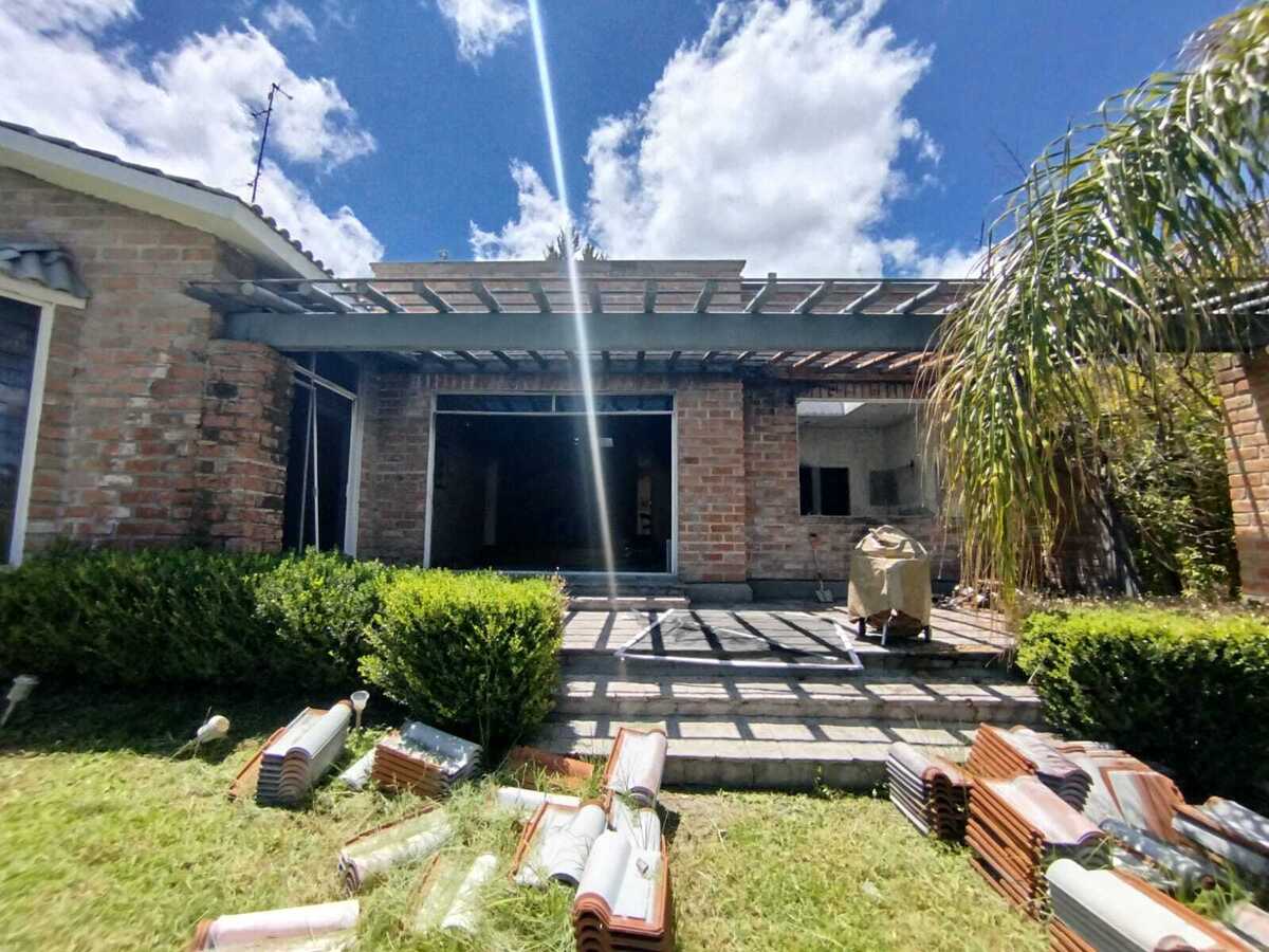 Casa à Venda em Juriquilla Villas del Mesón, PARA REMODELAR, Casa estilo californiano em um andar (com desníveis de dois degraus), três Quartos com Banheiro e Closet, cozinha integrada, quarto de serviço com entrada independente, corredores laterais, garagem para 4 carros, jardim na frente e nos fundos