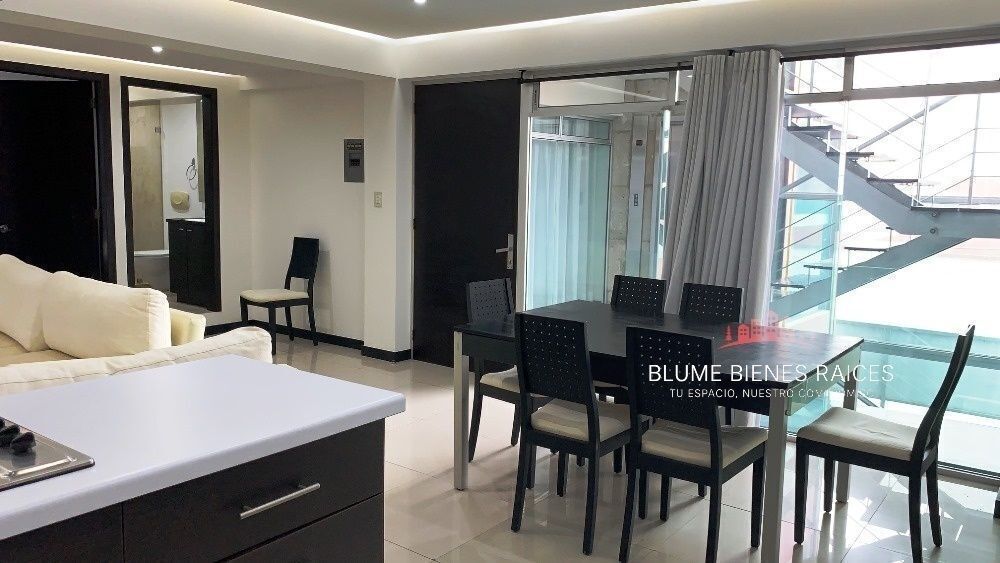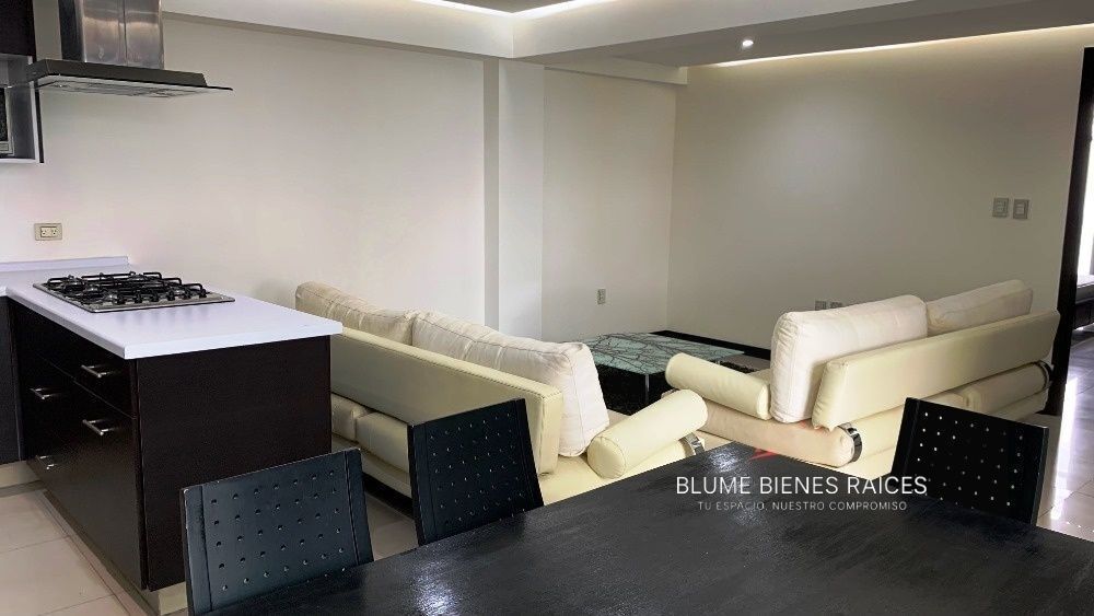 Renta agradable departamento interior, amueblado; en edificio pequeño. Sala comedor, cocina integral abierta, baño completo (y de visitas), área de lavado. Recamara con baño y closet. Vigilancia las 24 horas.