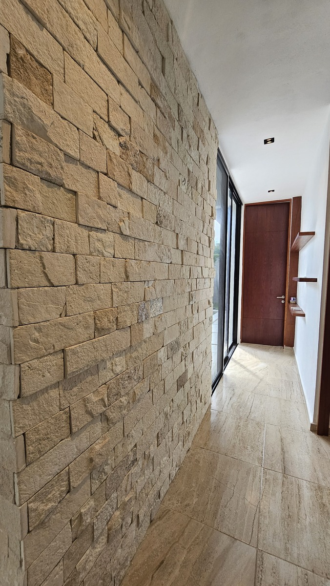 -Pedra vulcânica decorativa nas paredes das fachadas