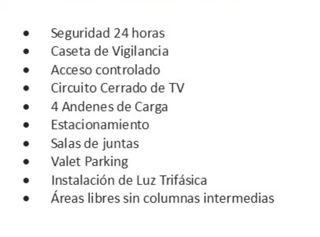 • Andén de carga y descarga, portón para tráileres y acceso vehicular.