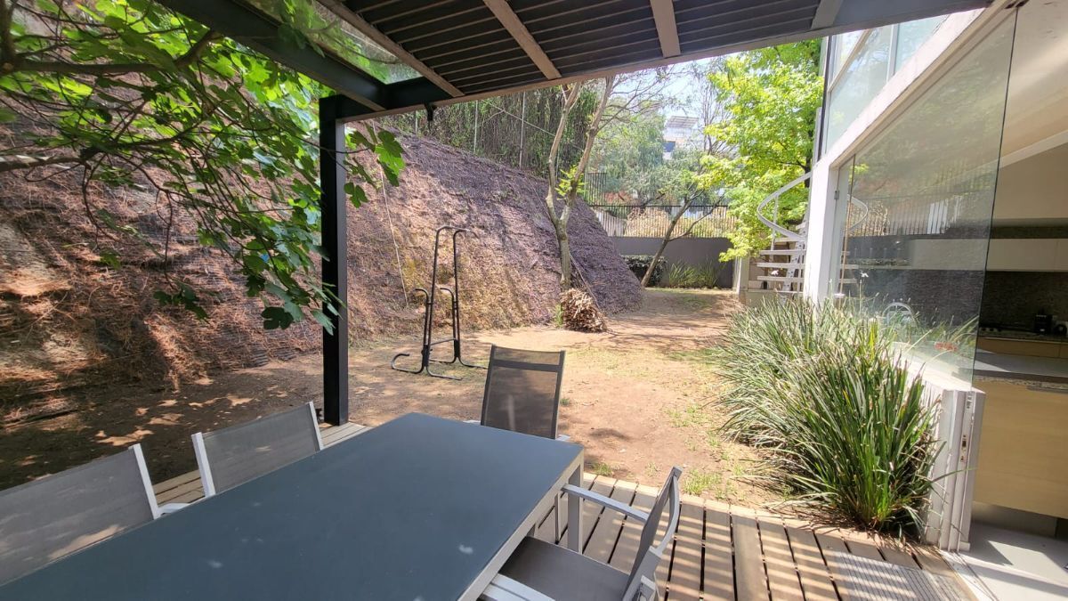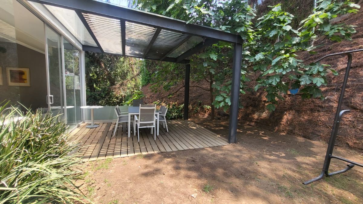 • Jardín privado con pérgola cubierta para comedor exterior.
