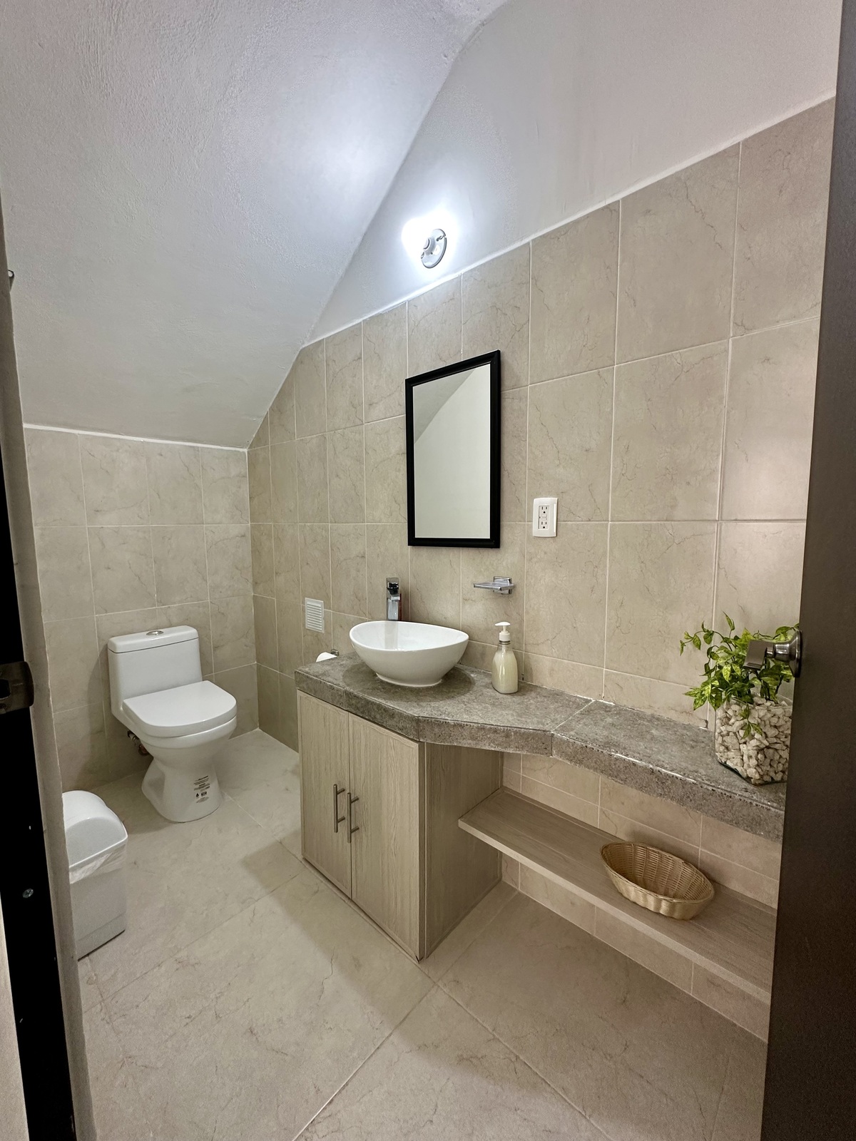 - 1 baño completo en planta alta y 1 baño de visitas en planta baja