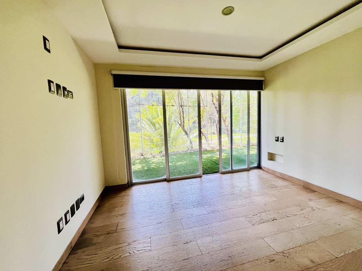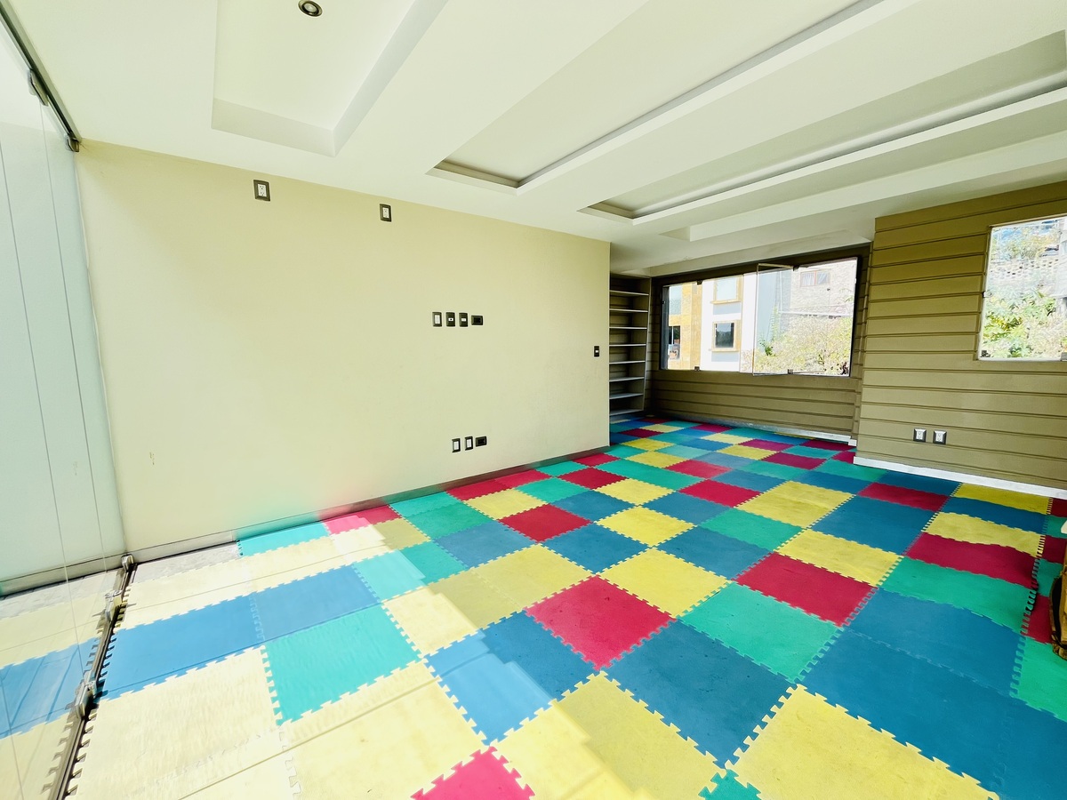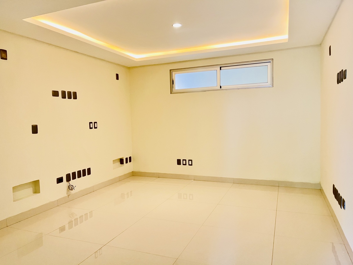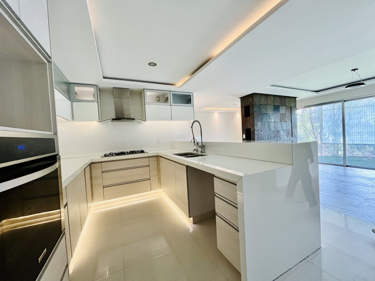 Cuenta con espacios abiertos en sala, cocina y comedor; lo que brinda una amplitud y luminosidad excepcional, hermosa chimenea que proporciona un ambiente cálido y acogedor, que también se recrea a través de las luces directas e indirectas instaladas con dimer para regular la intensidad de la iluminación.