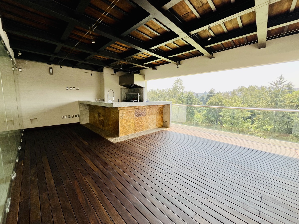 En sus áreas comunes disfrutarás de alberca, salón de fiestas, gimnasio y terraza con asador con excelentes vistas panorámicas