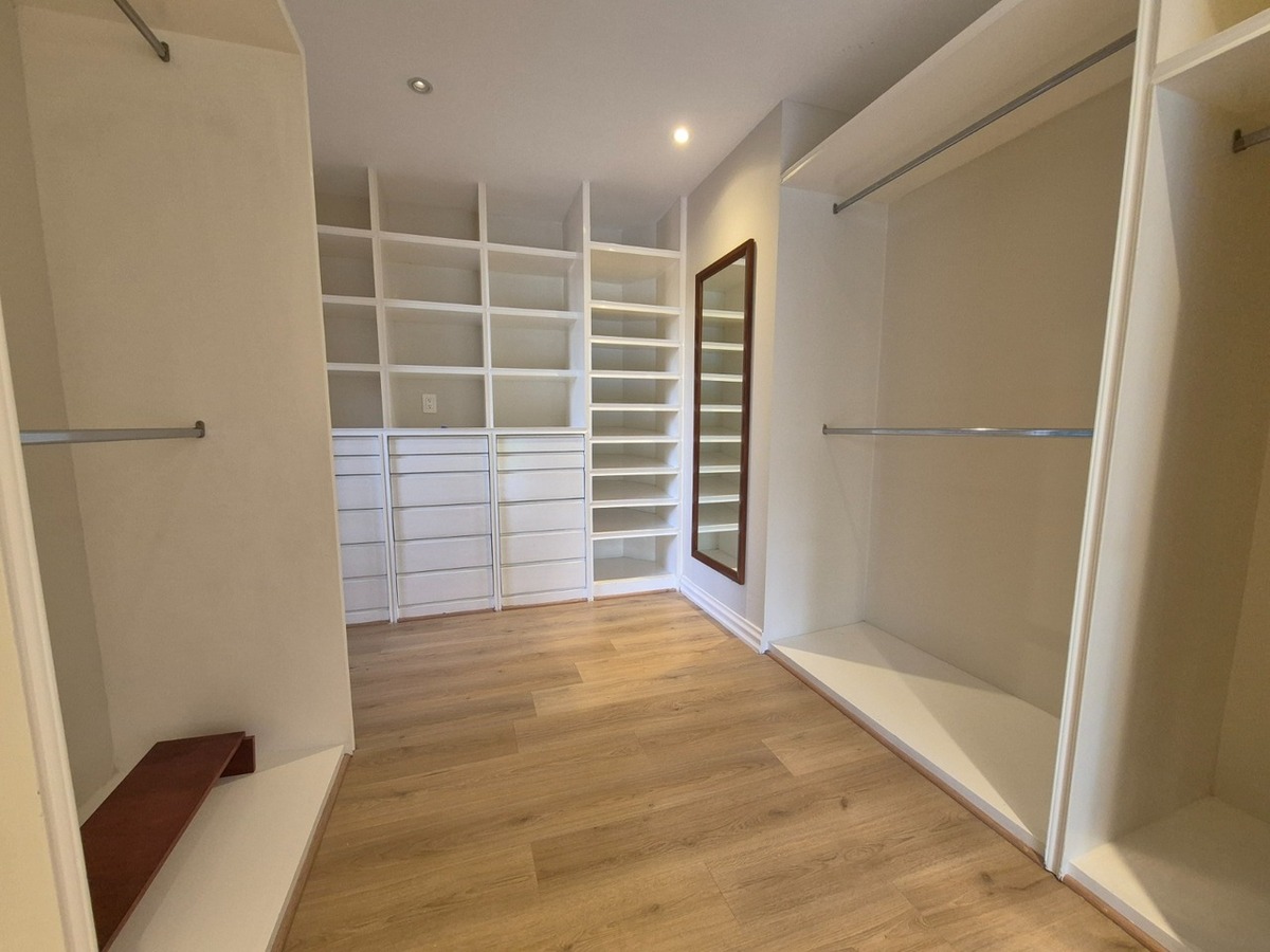 Conta com quatro quartos, cada um com banheiro e closet. Dispõe de duas varandas, uma de 60 m² e outra de 15 m², com vista arborizada em todo o apartamento. Inclui quatro vagas de estacionamento cobertas e independentes.