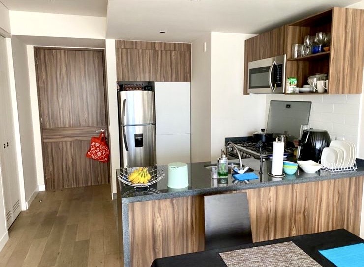 Hermoso departamento en Stampa Residencial, rodeado de áreas verdes a 5 minutos de Santa Fe, muy iluminado, techos altos, calientito, hermosa vista a la montaña, amueblado y equipado.