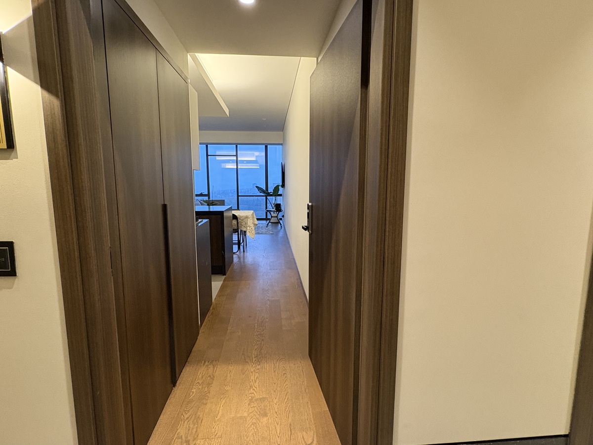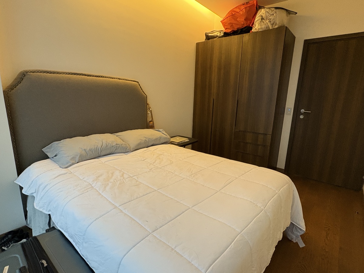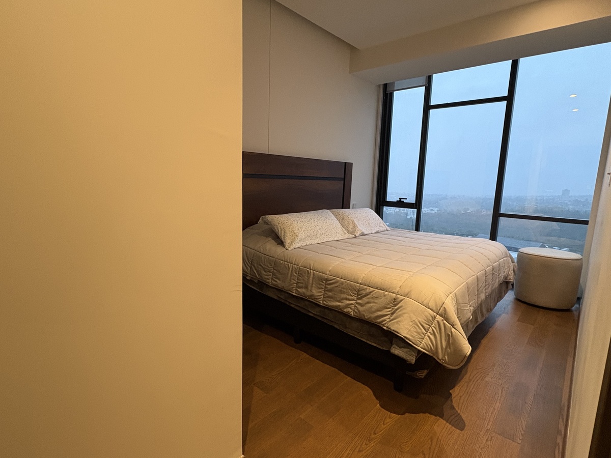 Departamento amueblado con 78 m2 habitables, acabados de lujo, piso de madera de ingeniería, estancia para sala comedor, cocina integral abierta, 2 recámaras, principal con baño y vestidor, 2 baños completos, persianas, área de lavado, bodega, 2 estacionamientos, elevadores, vigilancia 24/7.