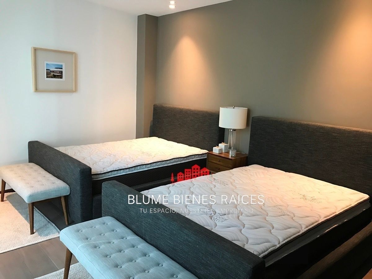 Renta de moderno departamento exterior, finamente amueblado e iluminado. Sala comedor con salida al balcón, baño de visitas completo, cocina integral abierta, área de lavado. Recamara principal con vestidor, baño con tina y salida a pequeño balcón, segunda recamara con closet y baño, acogedora área de televisión.