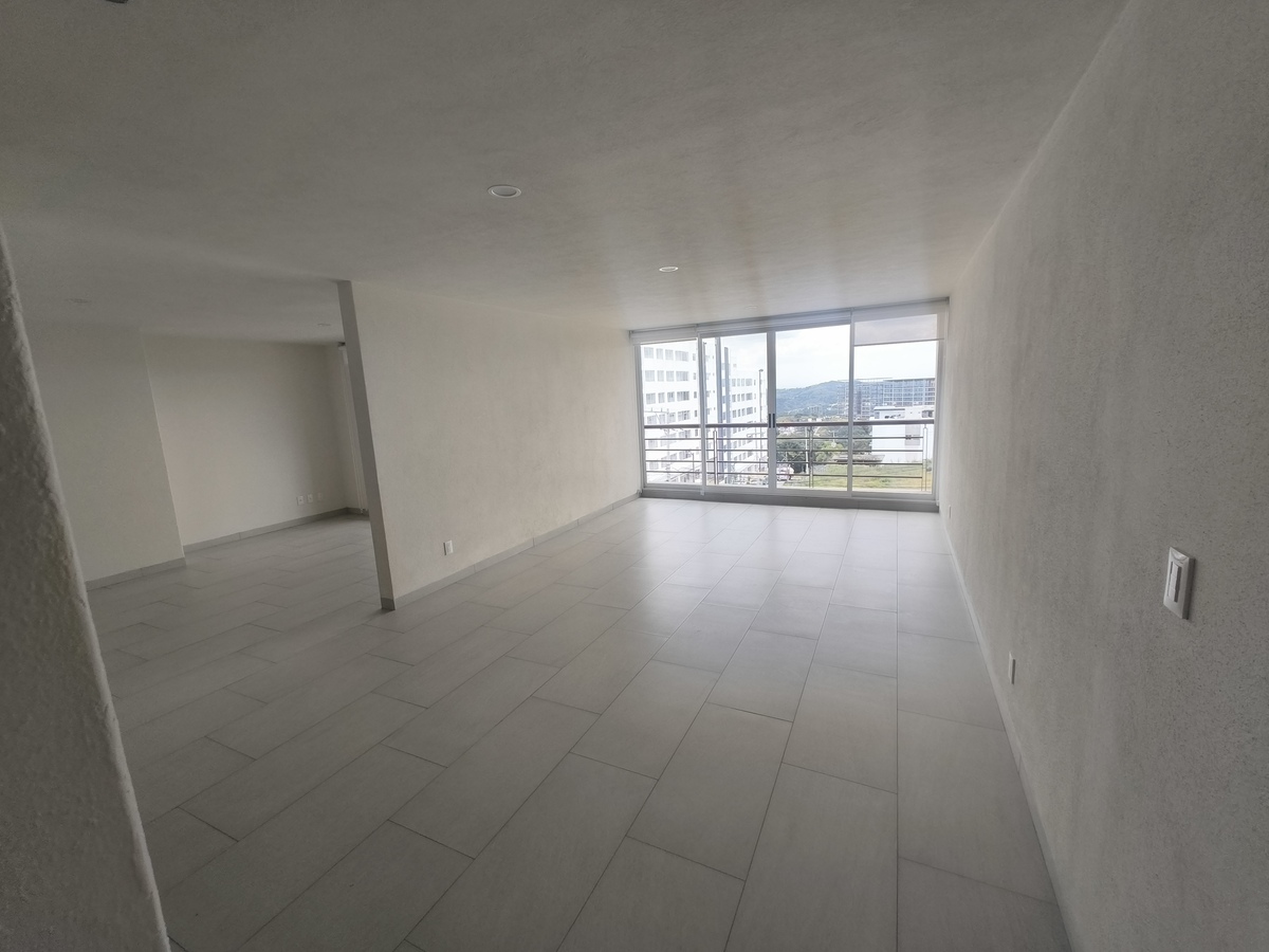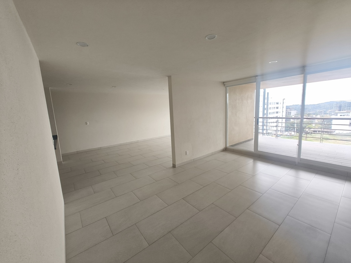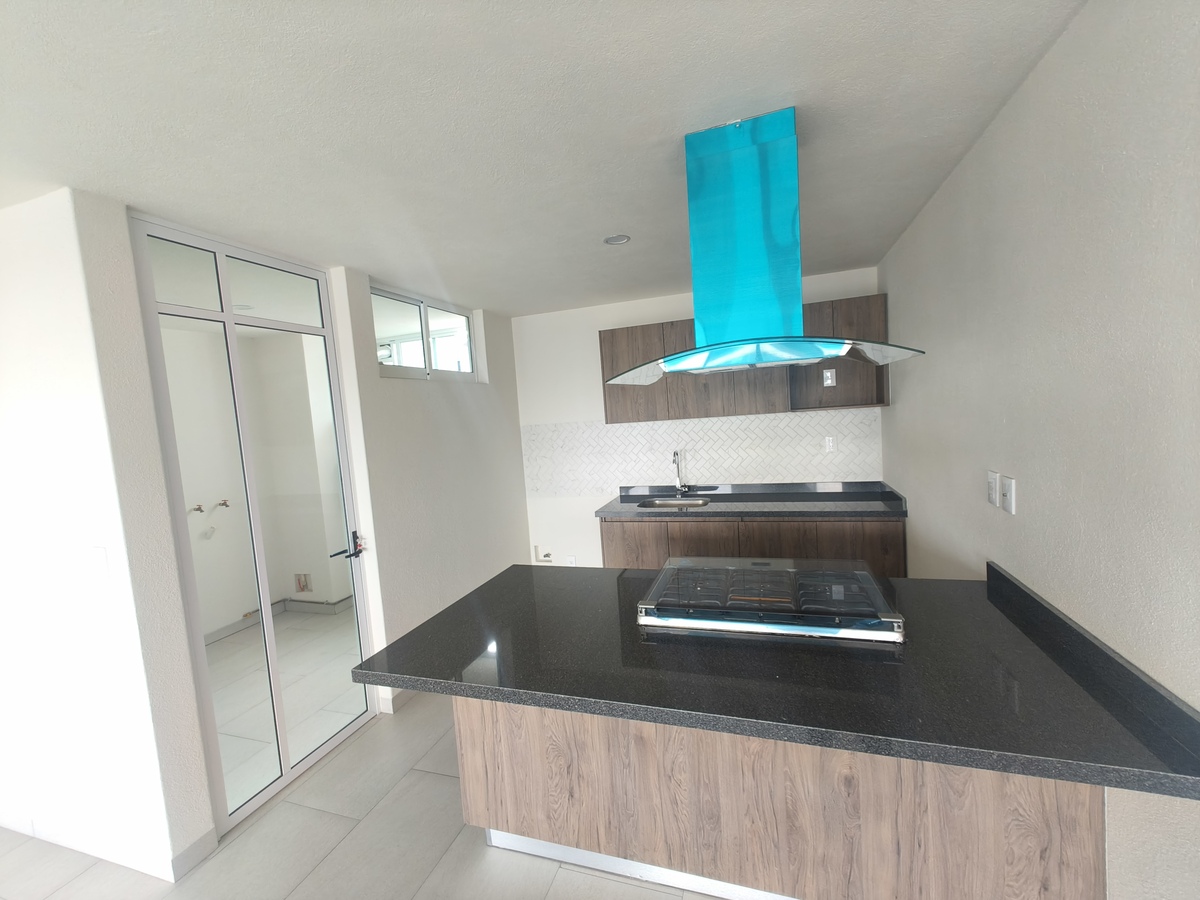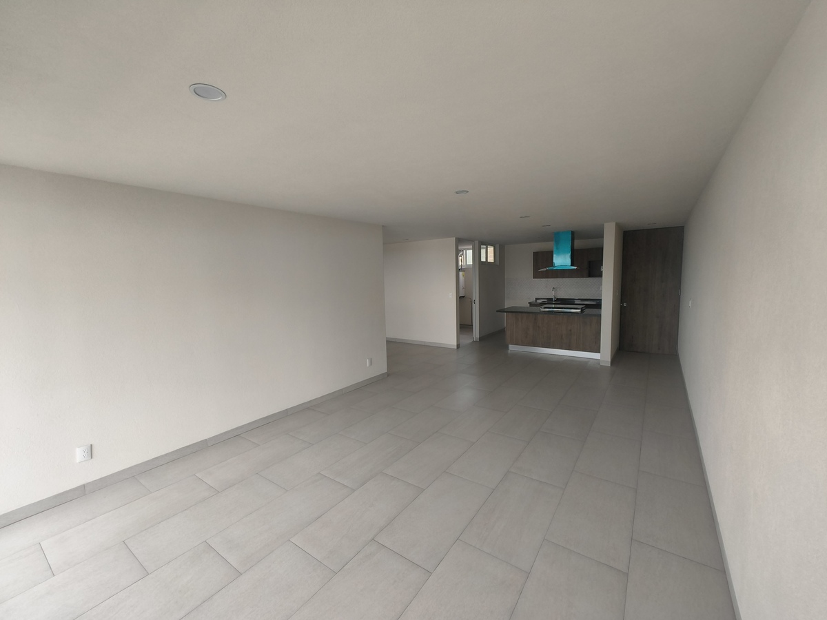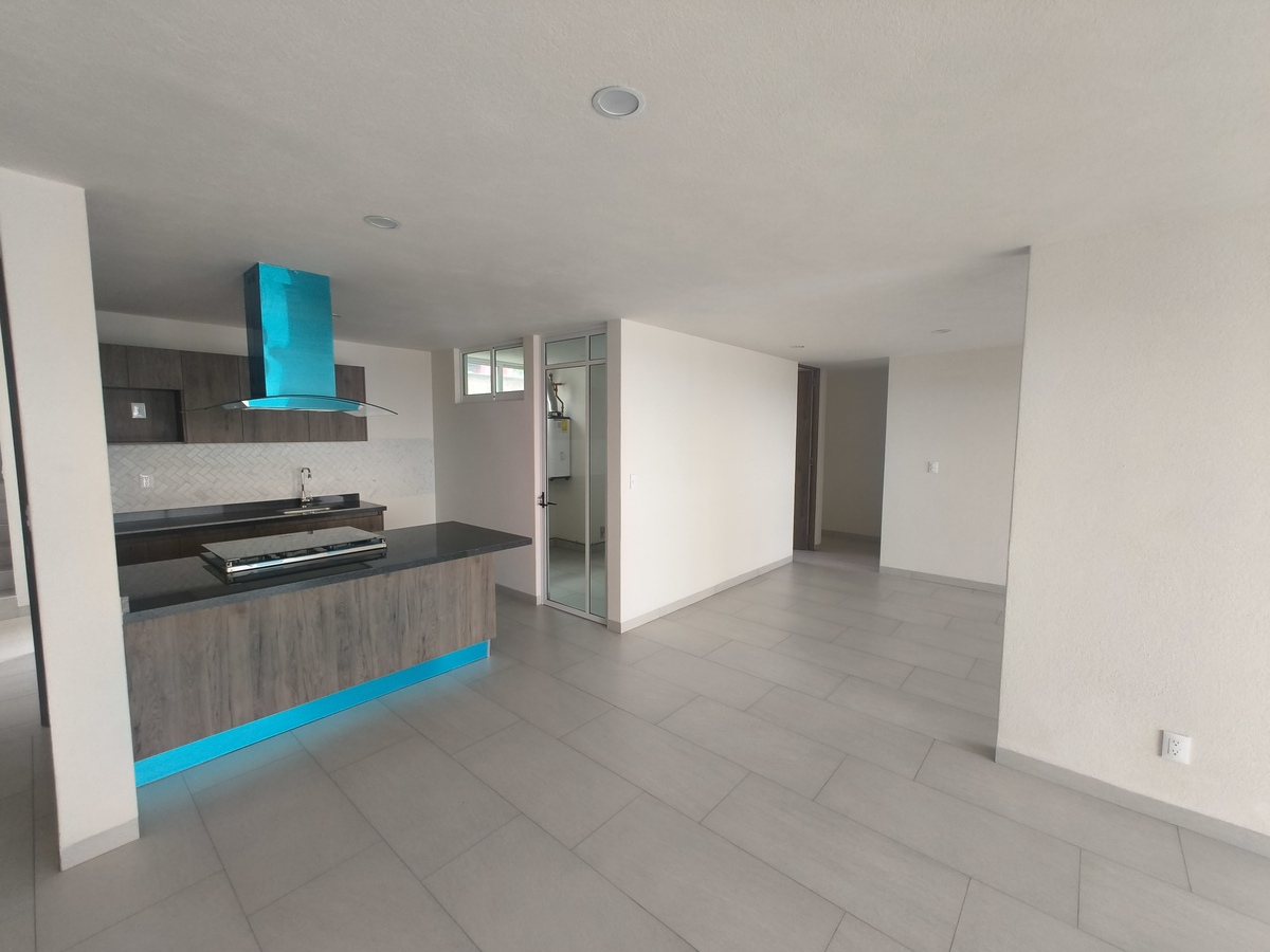 Sala comedor con terraza, Área de TV, cocina abierta, área de lavado , dos recamaras la principal con baño, vestidor y salida a la terraza, dos lugares de estacionamiento techados, bodega