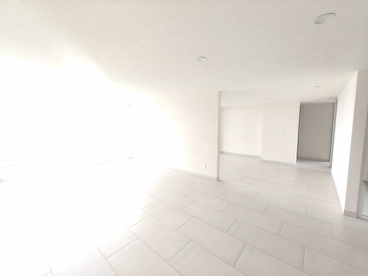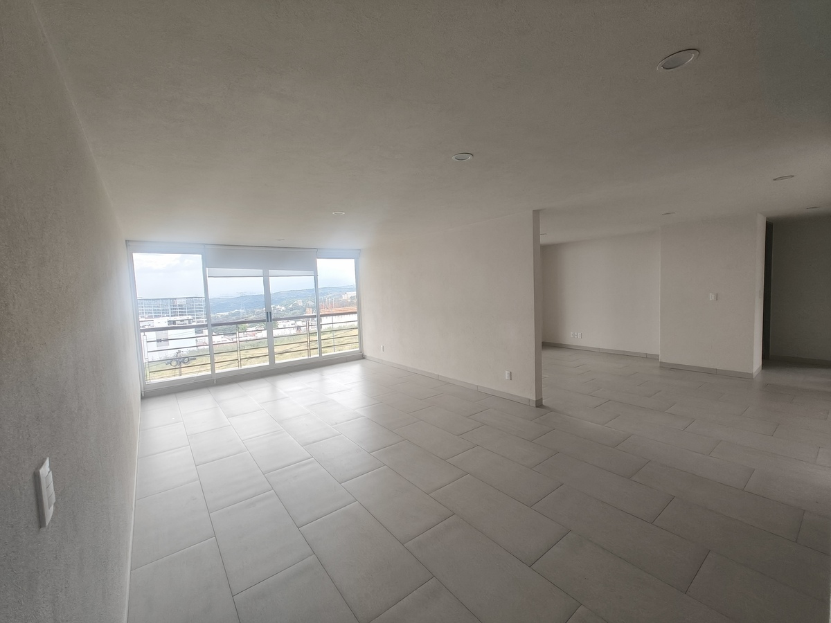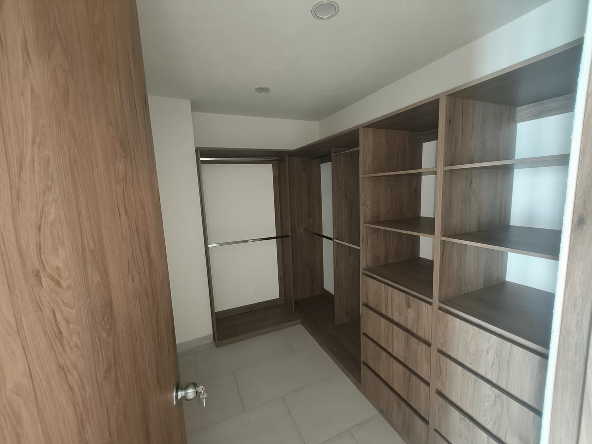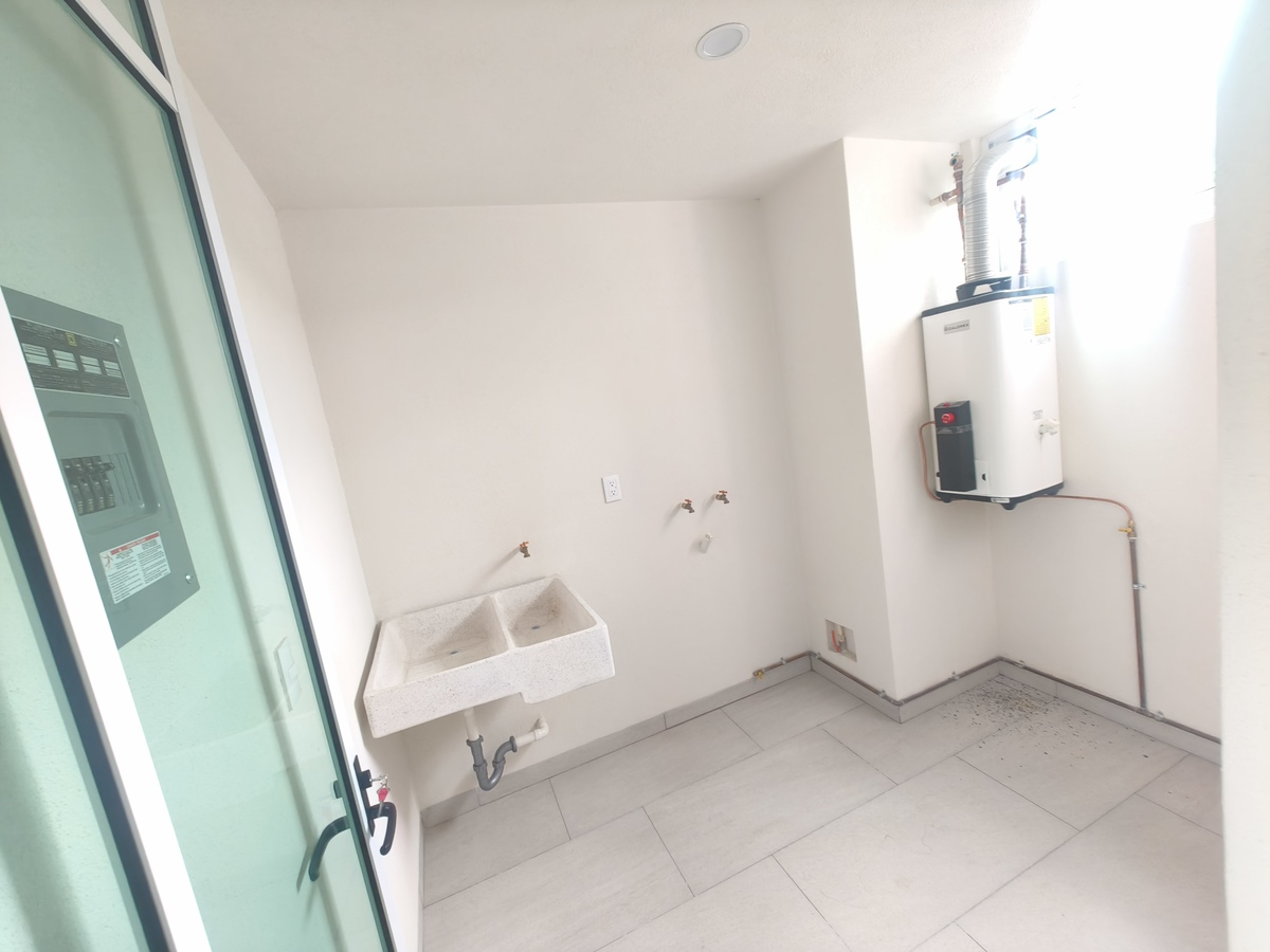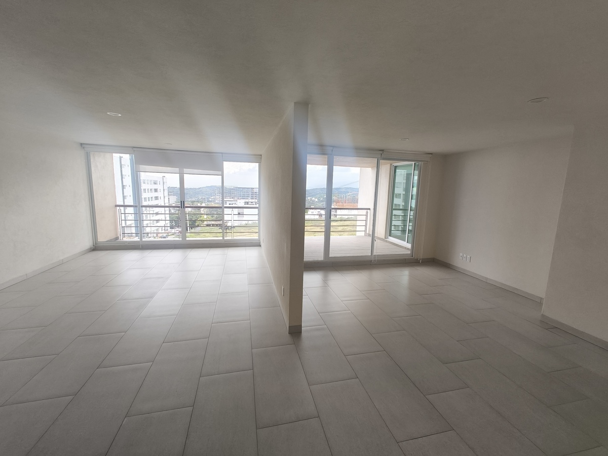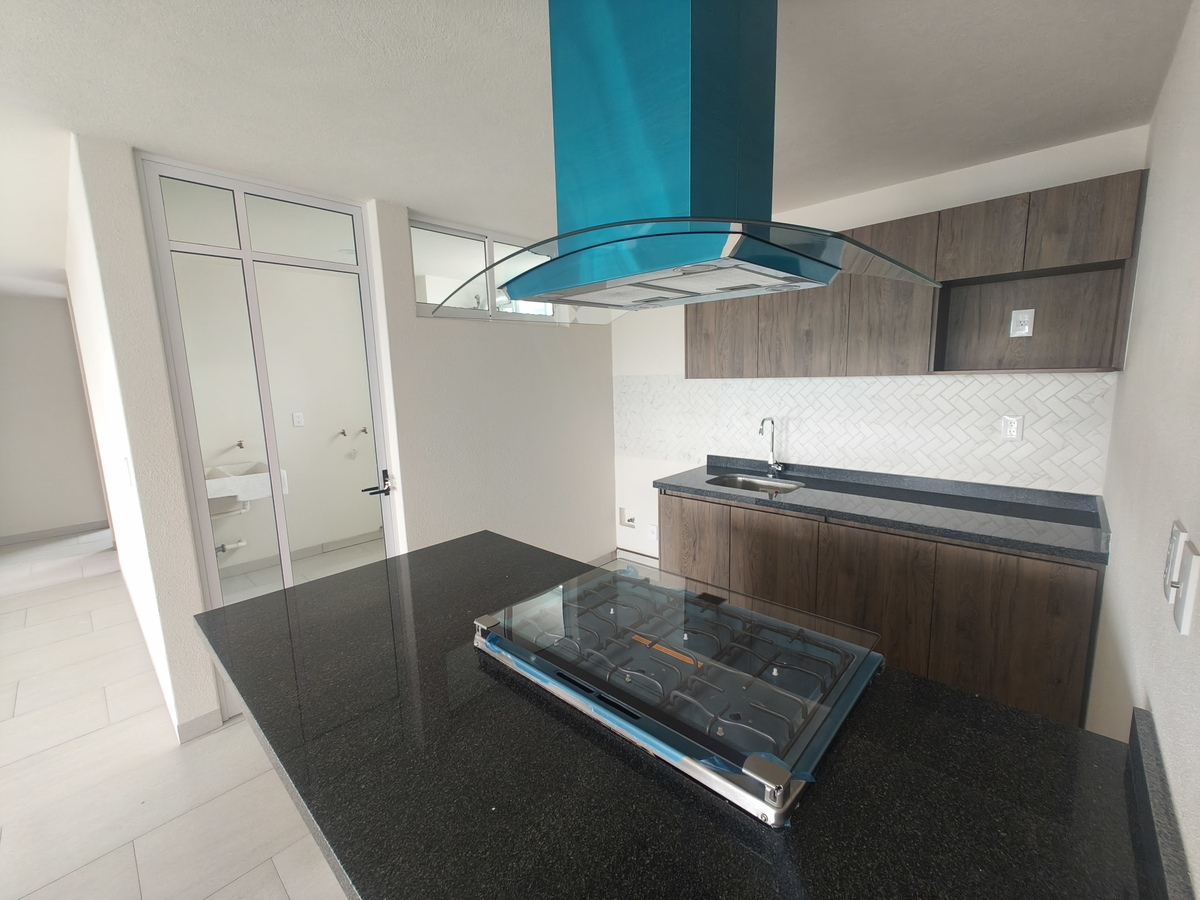 Sala comedor con terraza, Área de TV, cocina abierta, área de lavado , dos recamaras la principal con baño, vestidor y salida a la terraza, dos lugares de estacionamiento techados, bodega