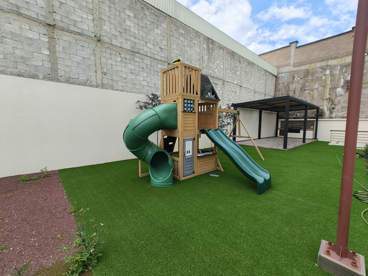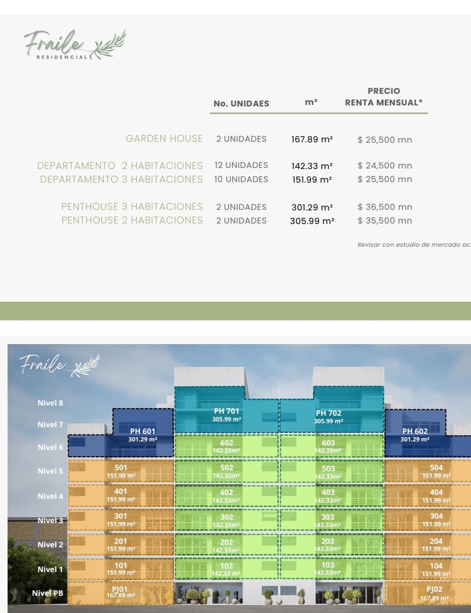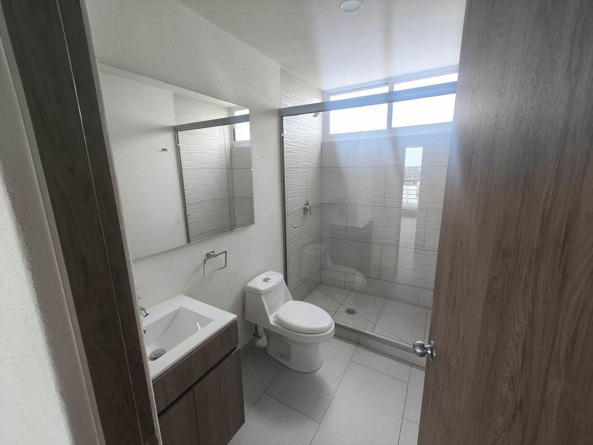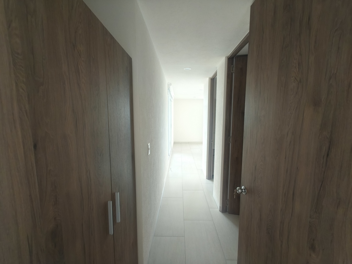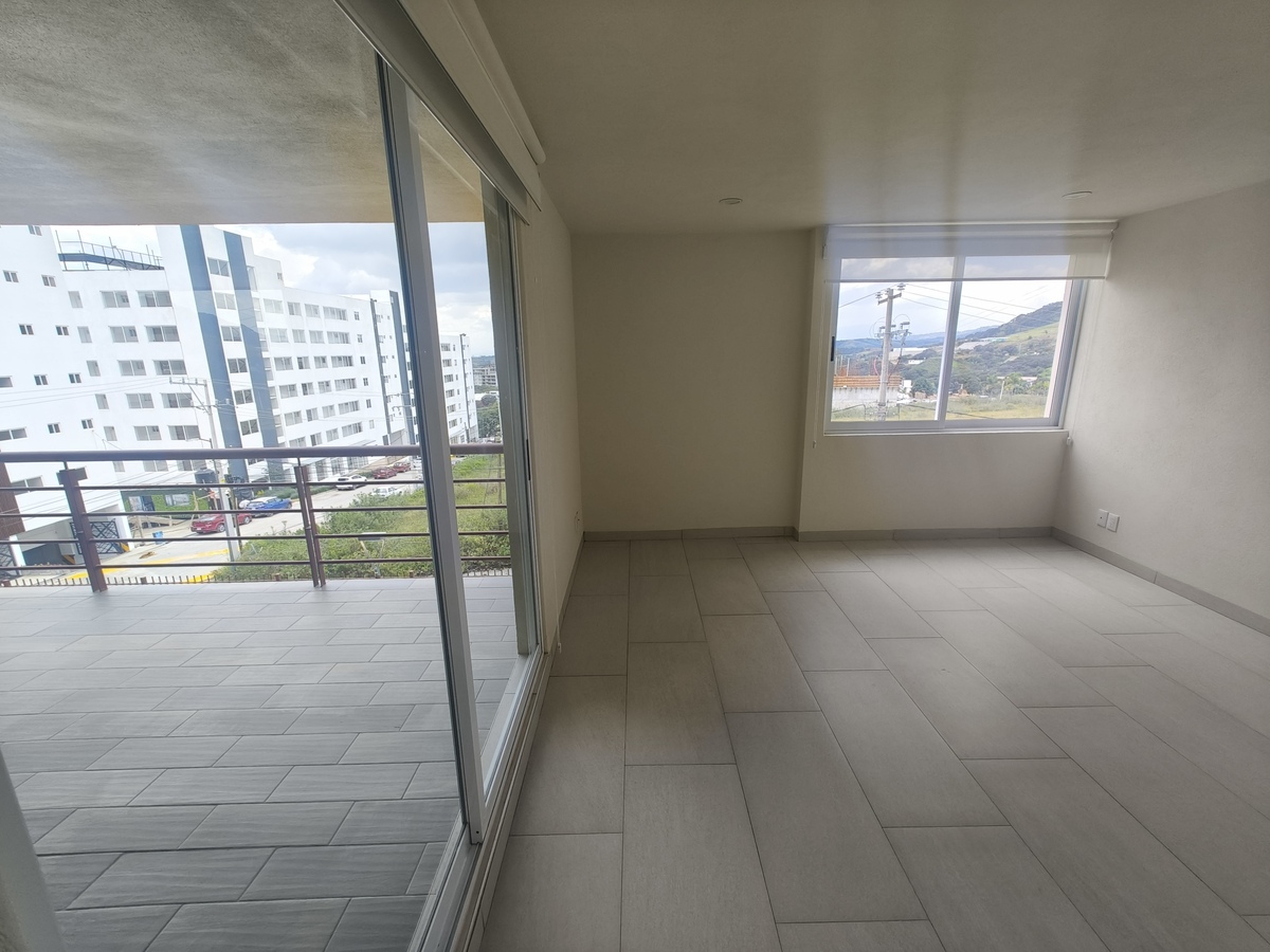 Sala comedor con terraza, Área de TV, cocina abierta, área de lavado , dos recamaras la principal con baño, vestidor y salida a la terraza, dos lugares de estacionamiento techados, bodega