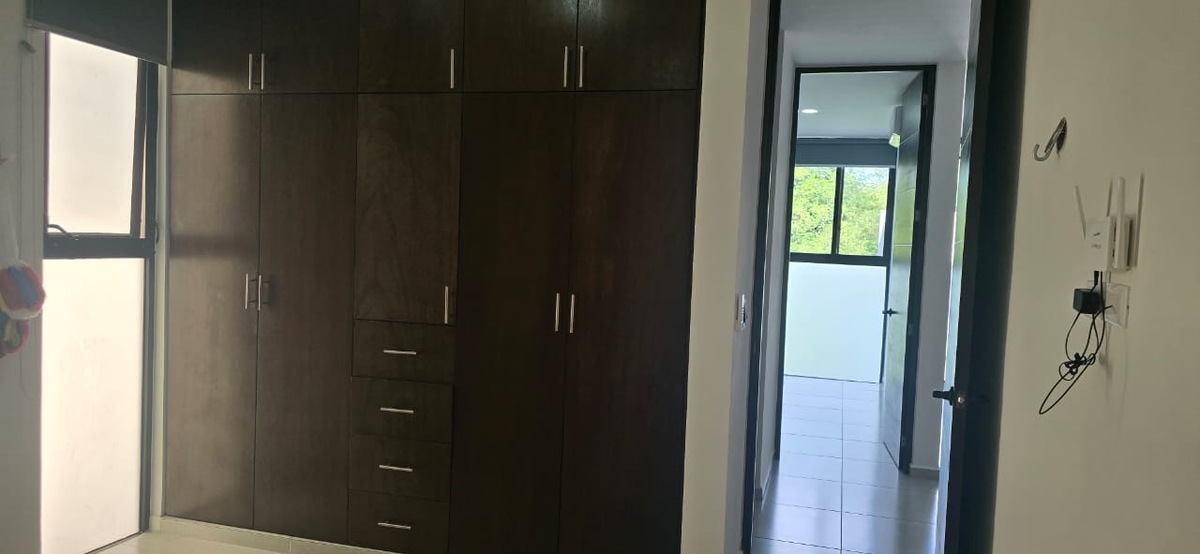 Aluga-se apartamento de 2 quartos semi-mobiliado, com excelentes espaços (82 m2 de construção), localizado em Lua, um empreendimento composto por 44 apartamentos e situado em Temozón Norte, a 5 minutos dos melhores serviços que o norte da cidade oferece.
