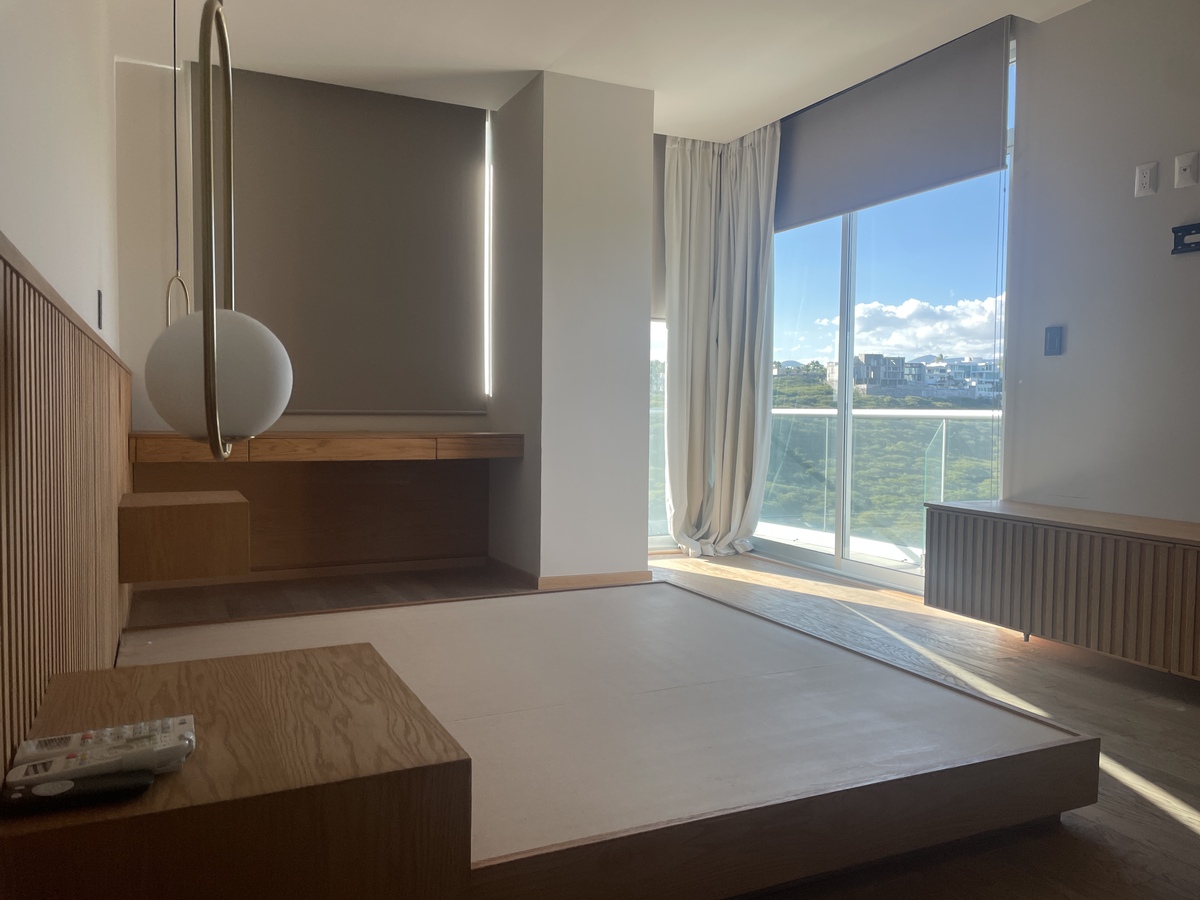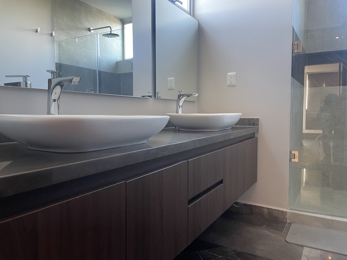 Amplio departamento con hermosa vista a la cañada en Wise Living , Sala comedor con puertas de cristal corredizas a la terraza con hermosa vista. Cocina cerrada con barra de Cuarzo blanco, área de TV, 2 recamaras que comparten baño completo, recamara principal con hermosa vista y salida a la terraza, amplio vestidor, baño completo. Medio baño de visitas, cuarto de servicio con baño y área de lavado techada, tres estacionamientos techados y bodega. Persianas, aire acondicionado, cristales templados, regaderas de lluvia. Amenidades espectaculares, alberca infinity, salon lounge, enorme gimnasio, cancha de Padel y estricta vigilancia 24/7