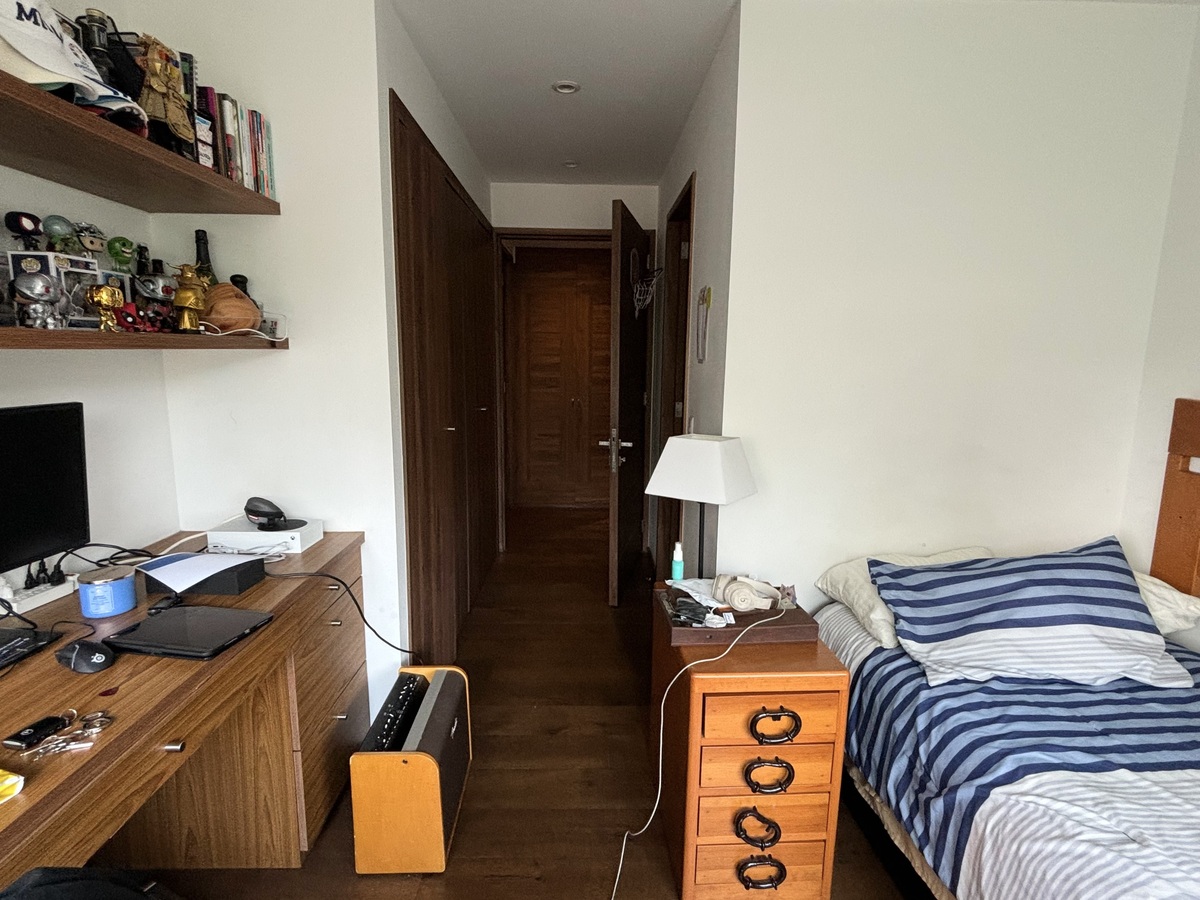 De la sala se accede a un pasillo que lleva al medio baño de visitas, al área de family room y a las recámaras. Las dos recámaras secundarias cuentan con closet, dos camas individuales, escritorio y baño completo. La recámara principal cuenta con cama matrimonial, vestidor y baño completo. Todas las recámaras con vista exterior.