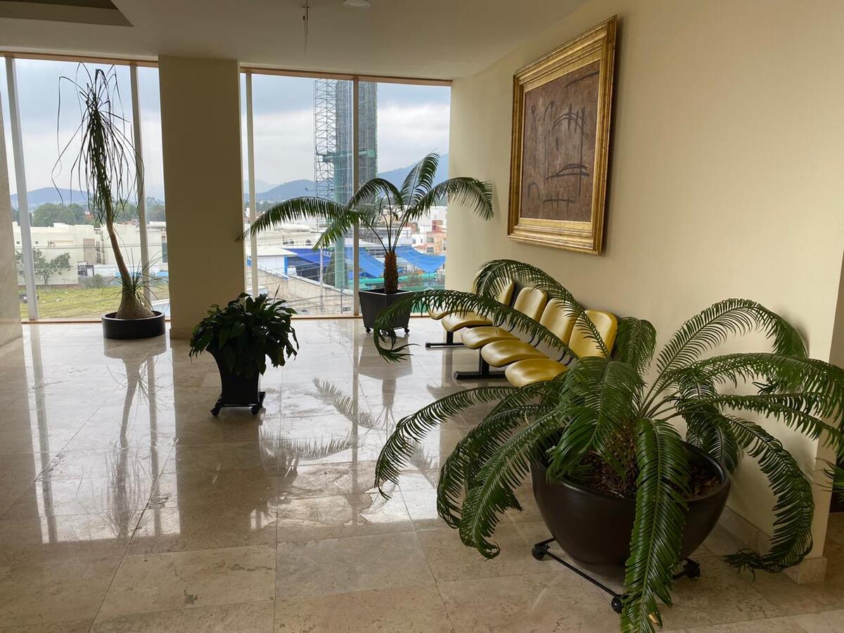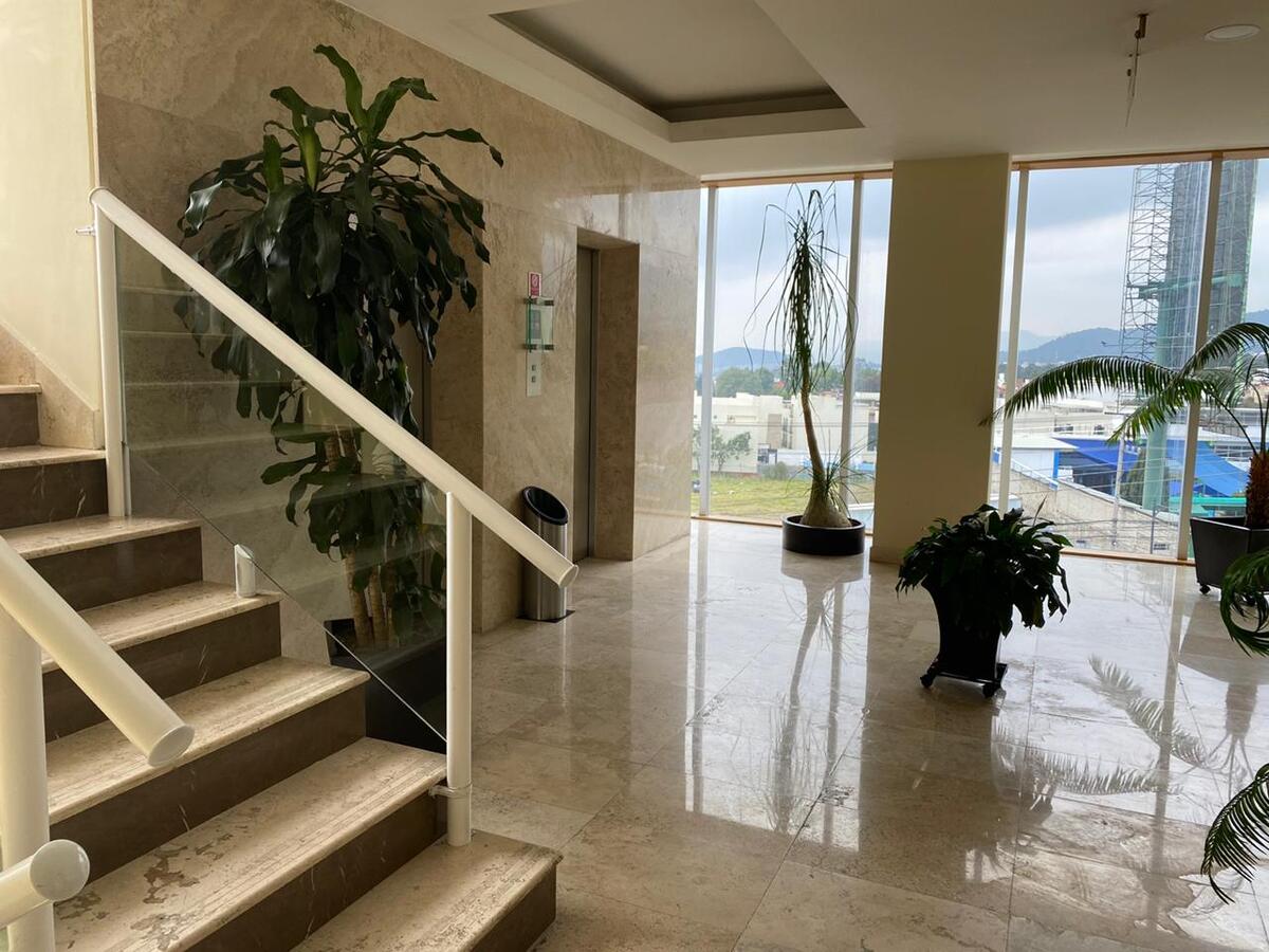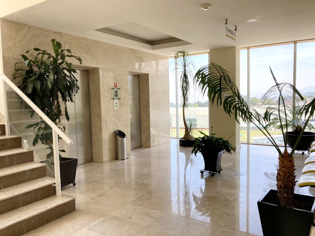 El edificio cuenta con vigilancia 24 hrs, servicio de recepción, estacionamiento de visitas. Elevadores y escaleras fijas, baños comunes para mujeres y hombres en cada piso, una agradable terraza con mesas sillas y baños en la parte alta del edificio, la cual puede ser utilizada por todas las personas que laboran en el corporativo.