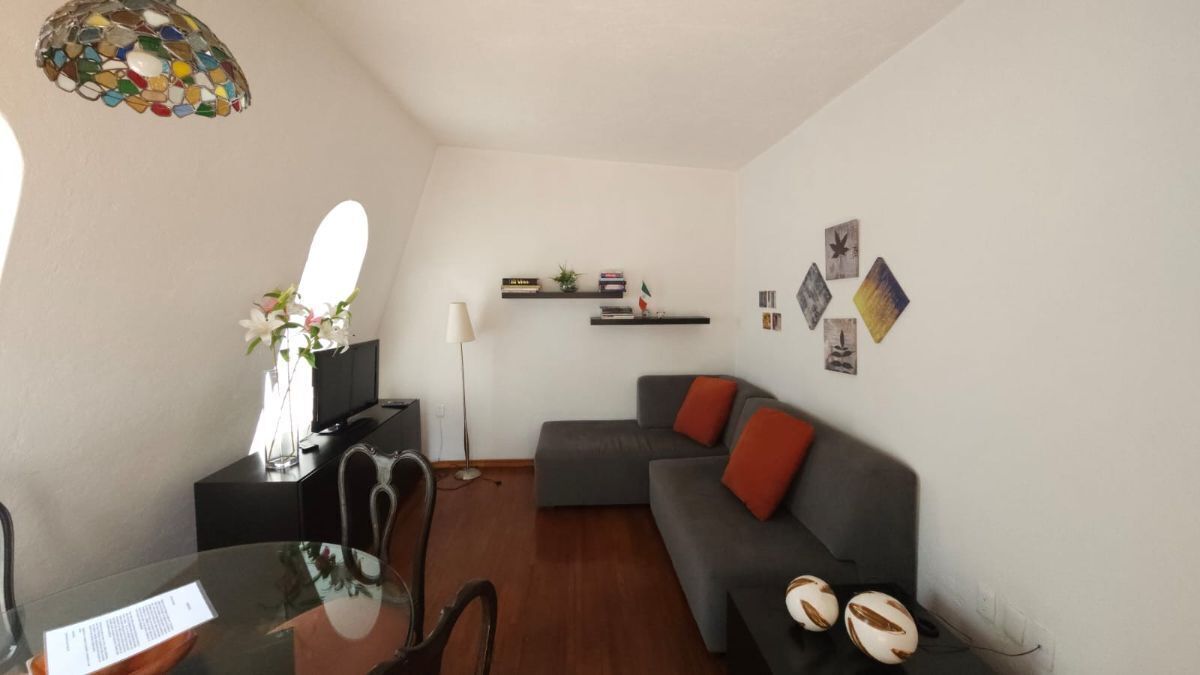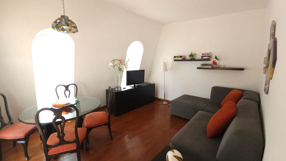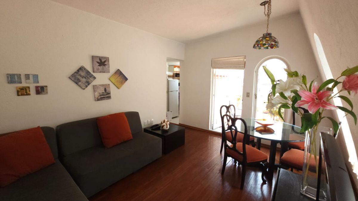 • Sala, comedor, cocina integral, 1 recámara, con cama queen size, 1 baño completo, terraza propia