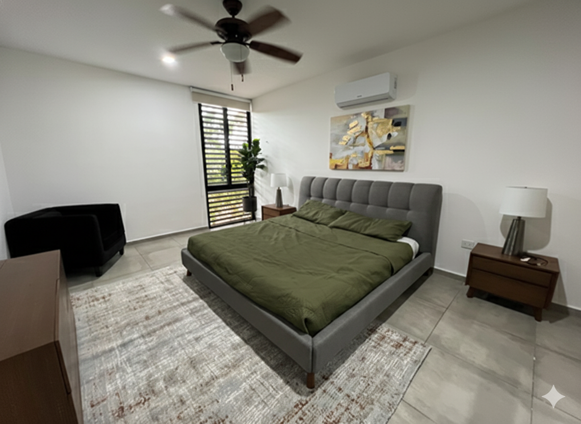 La cocina está completamente equipada, el mobiliario es nuevo, y todas las áreas cuentan con aire acondicionado y persianas blackout.