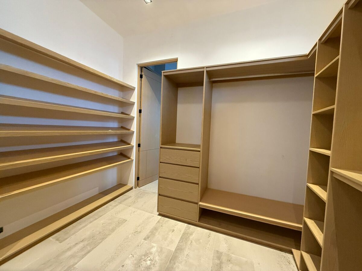 - 4 habitaciones con baño completo y clósets (una en planta baja, tres en planta alta). La principal cuenta con vestidor, tina y doble lavabo.