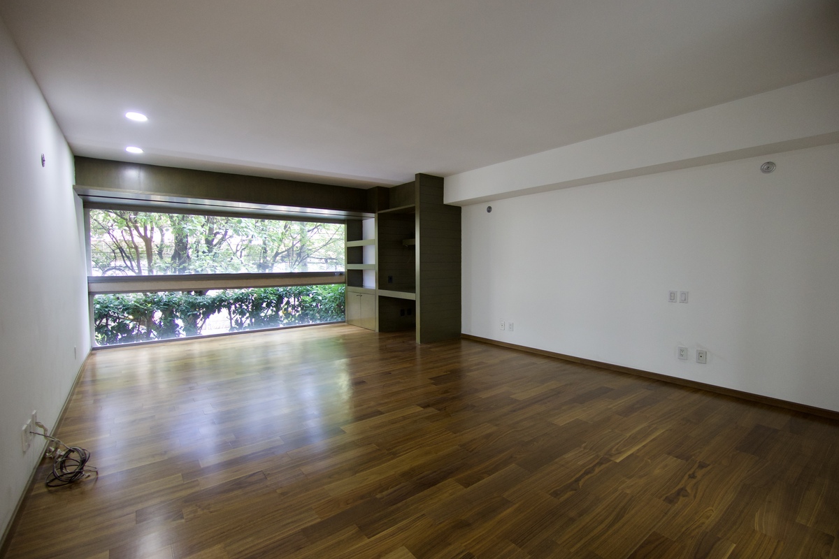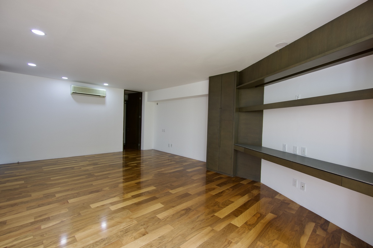Exclusivo departamento de 336 m², ubicado frente al Club Asturiano de Polanco. Cada detalle refleja elegancia y confort: cuenta con tres recámaras tipo suite, todas con walk-in clóset y baño completo, amplia sala y comedor con vista arbolada, cocina equipada con despensa, área de servicio y cuarto de personal.