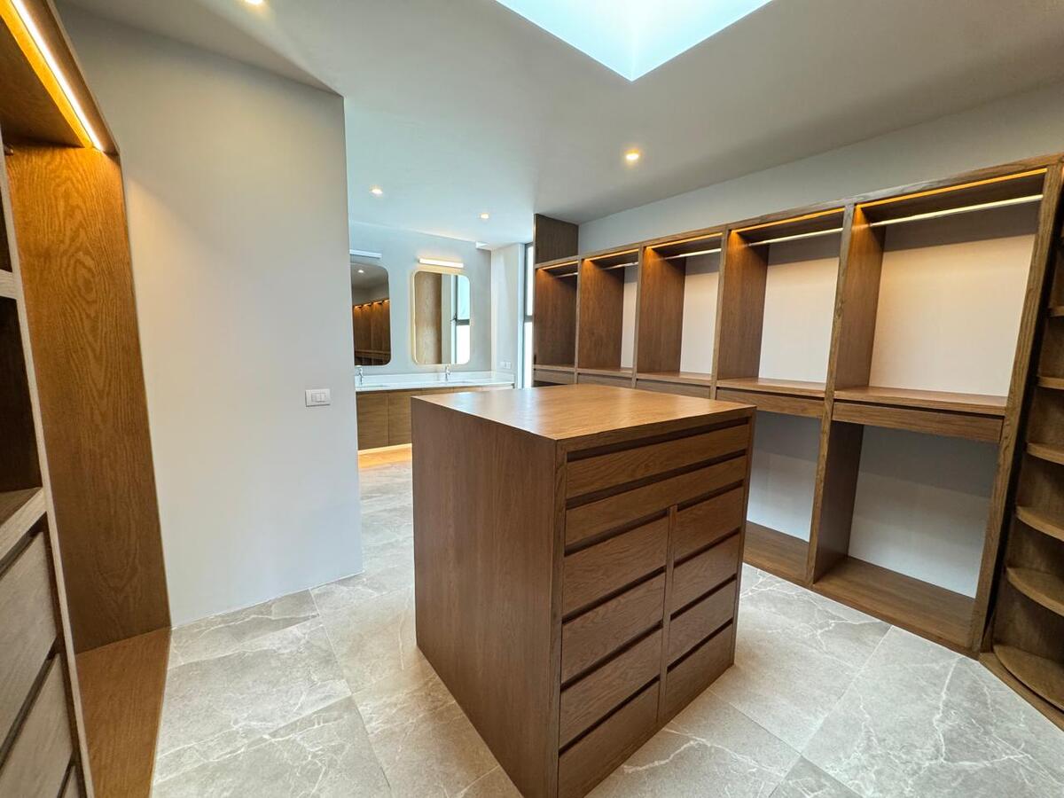 Cochera para 6 autos (3 techados), distribuidor, medio baño de visitas, family room, comedor y cocina importada con isla y electrodomésticos de lujo.