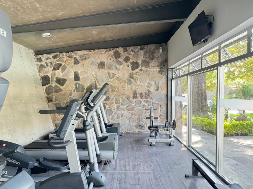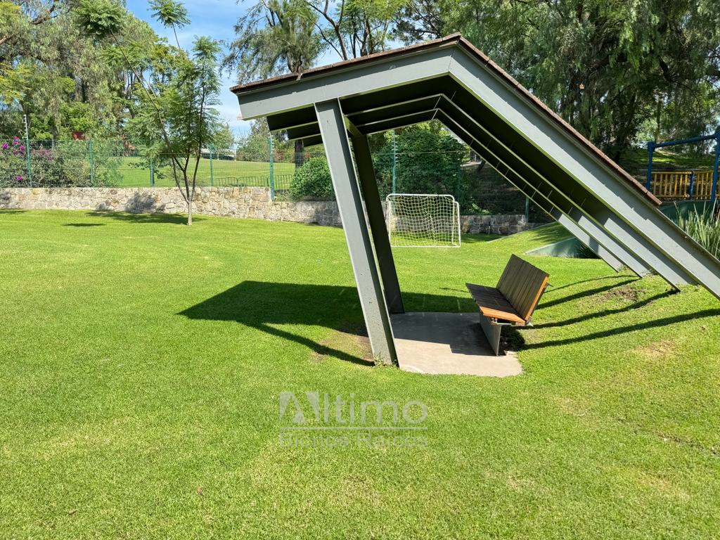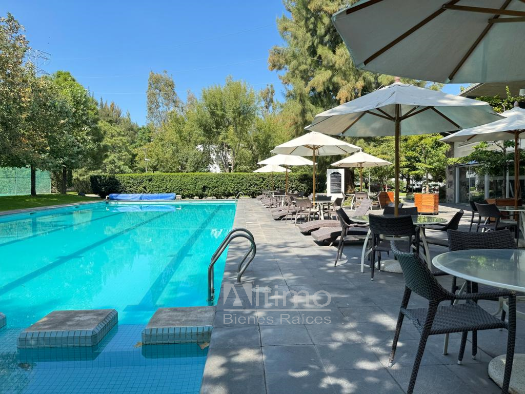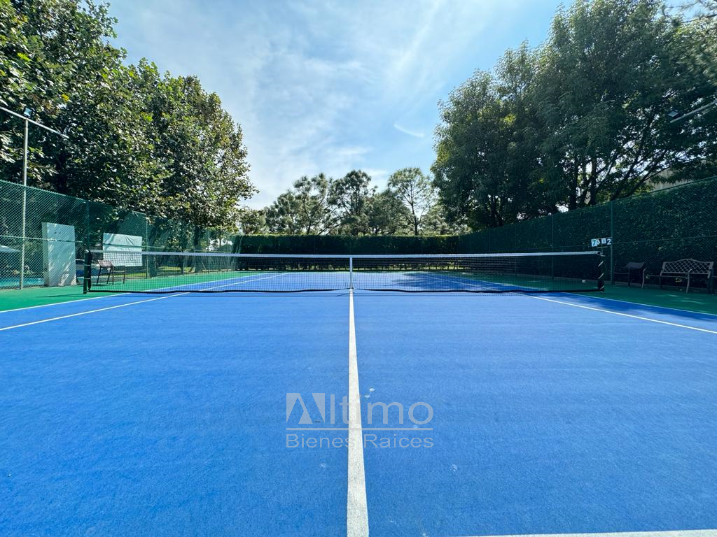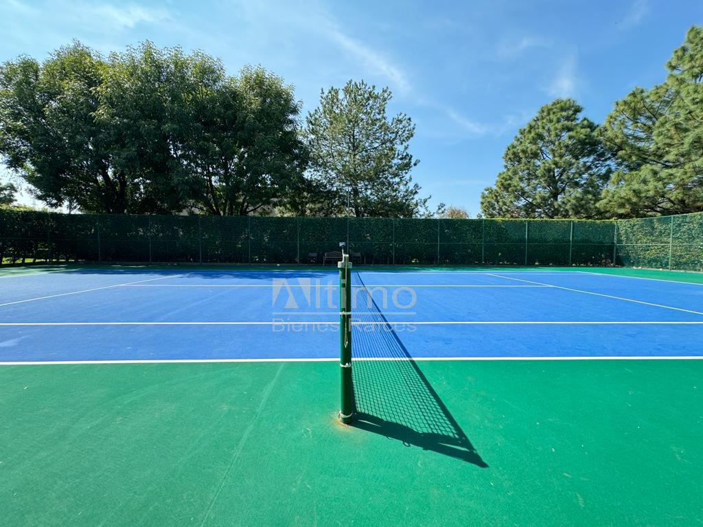 Entorno moderno y arbolado con seguridad 24/7, alberca, gimnasio, canchas de tenis, pista para correr, jacuzzi, dos lagos y área de juegos infantiles.