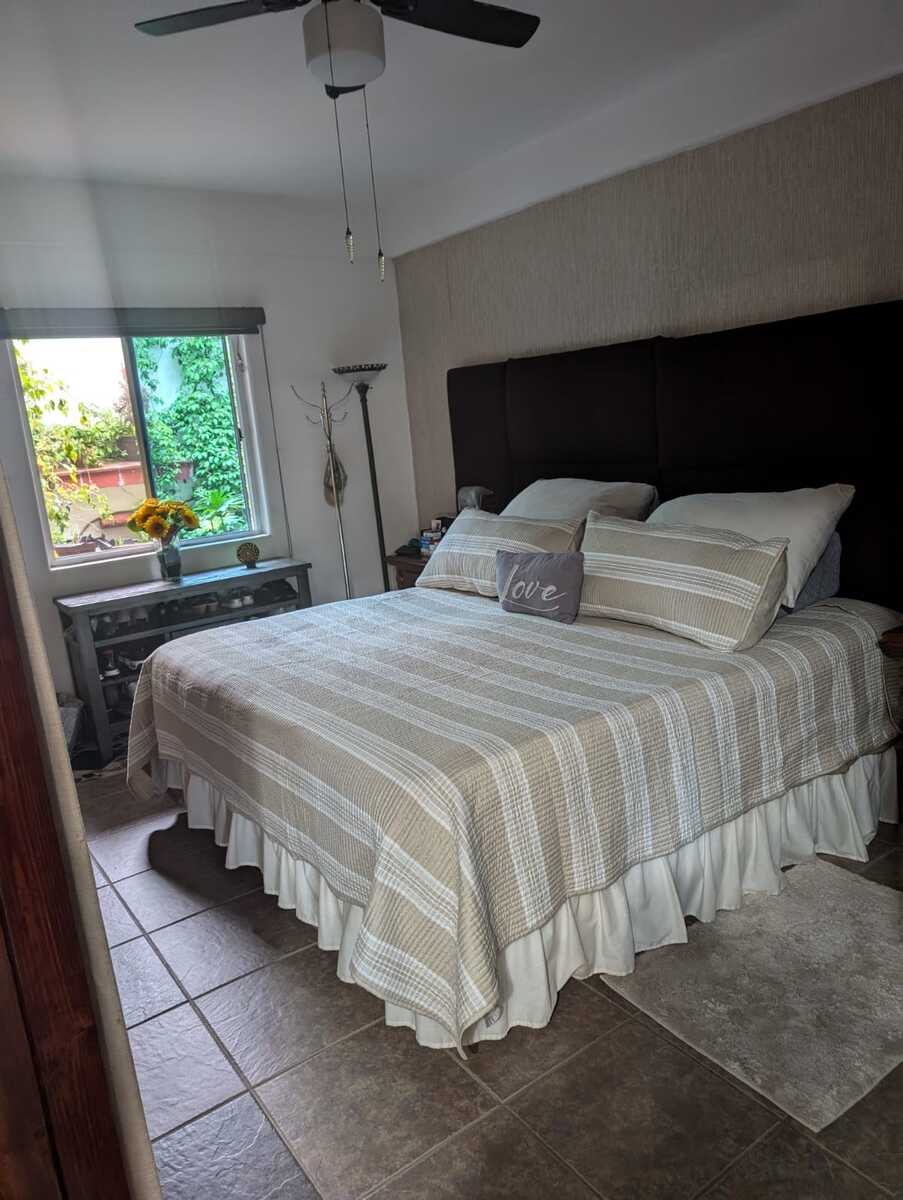 2 recamaras, 2 baños, cocina equipada con barra refrigerador, estufa, 2 cajones de estacionamiento, terraza, jardin, excelentes vistas al mar. Servicios gas, luz y agua incluidos.