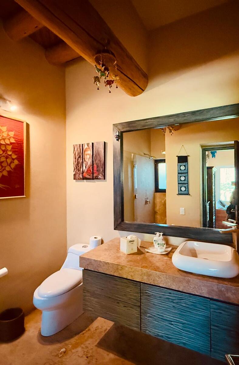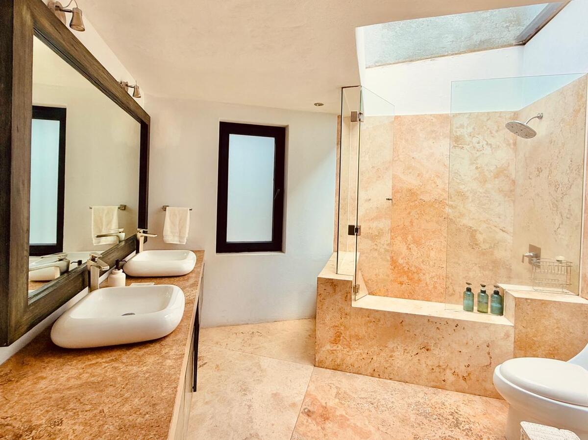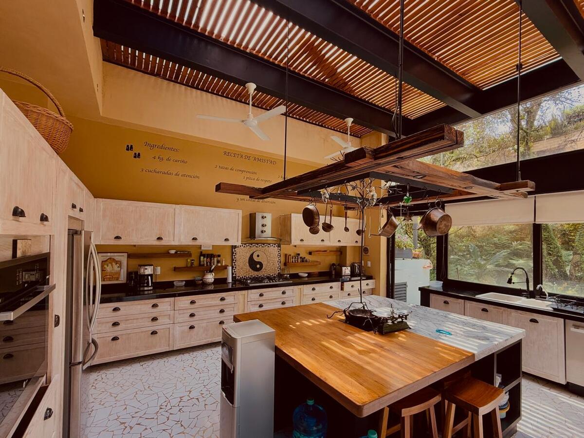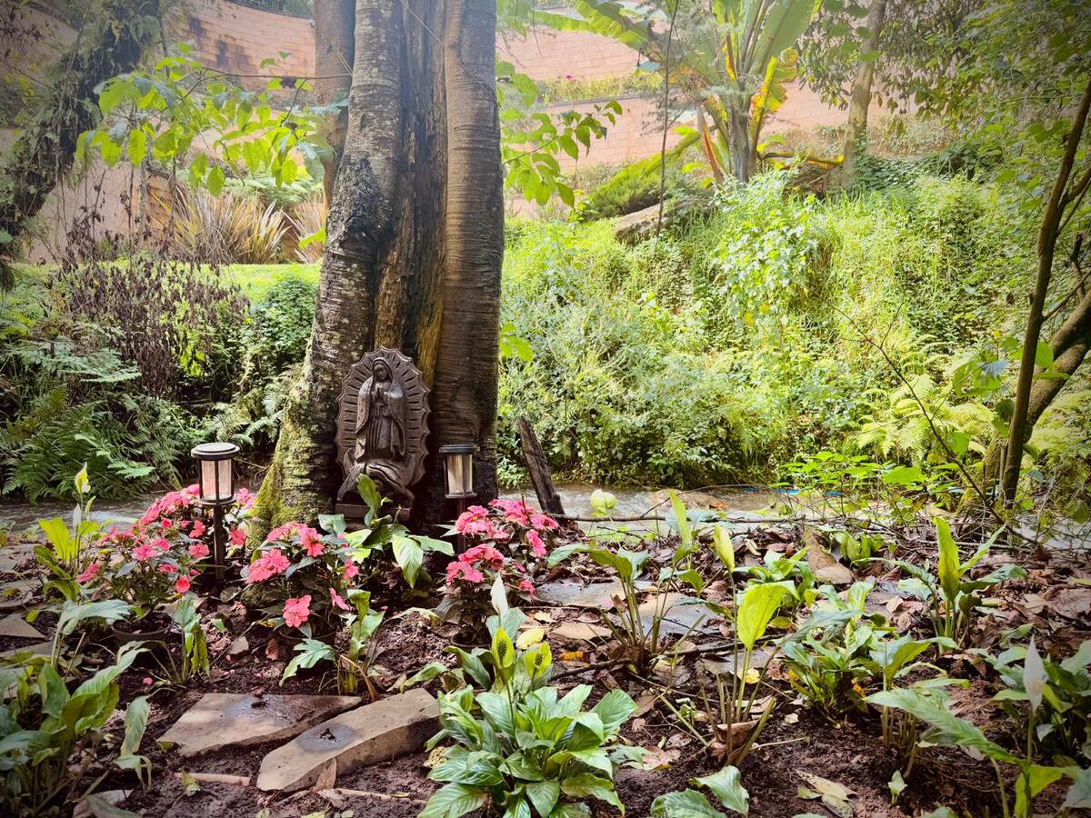 La casita anexa ofrece un amplio espacio para sala y comedor, actualmente utilizada como salón de yoga, medio baño y cocineta, en planta alta dos recámaras con baño completo cada una. Además, la propiedad cuenta con una casita de servicio, área de lavado y estacionamiento para 10 autos.