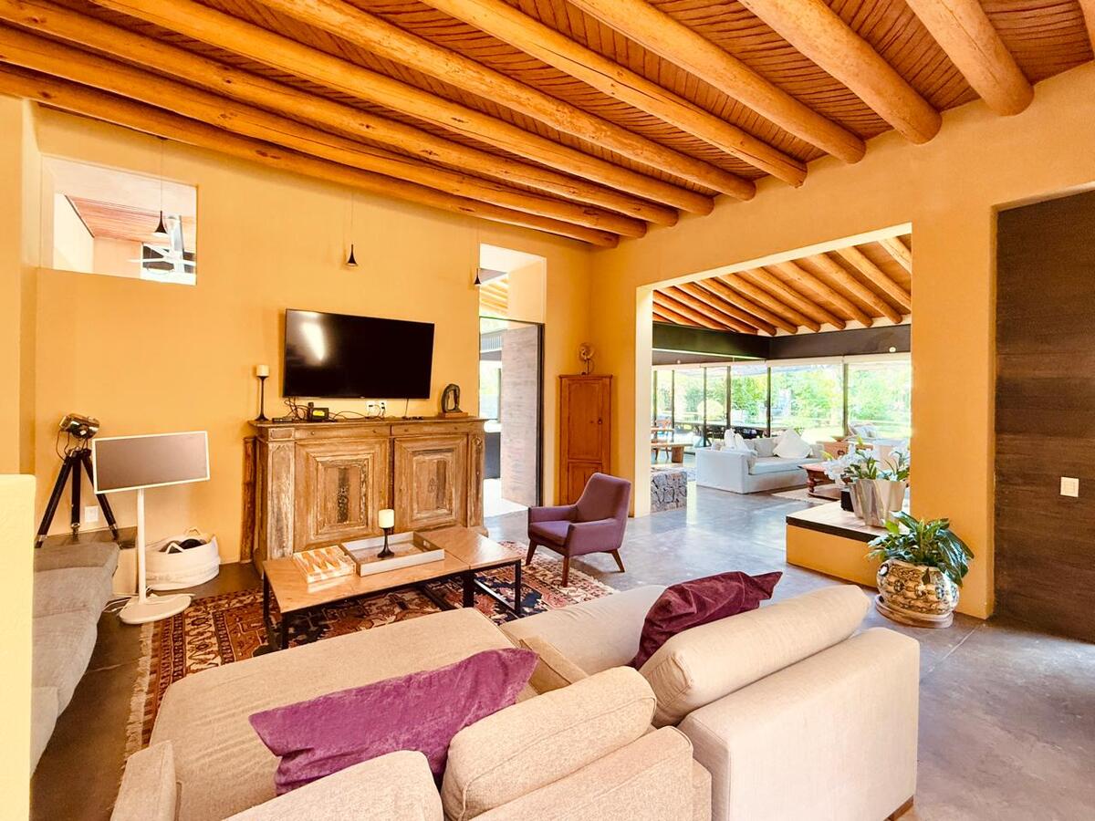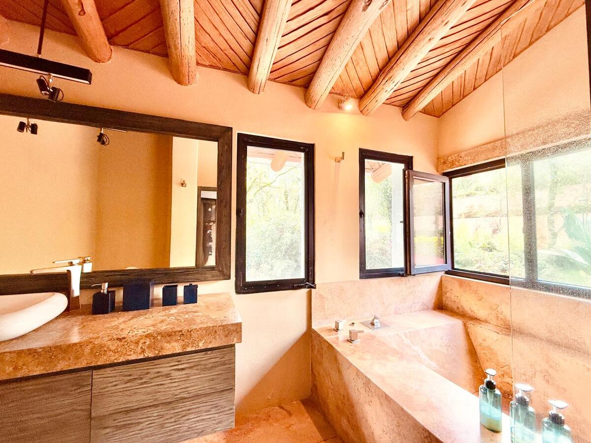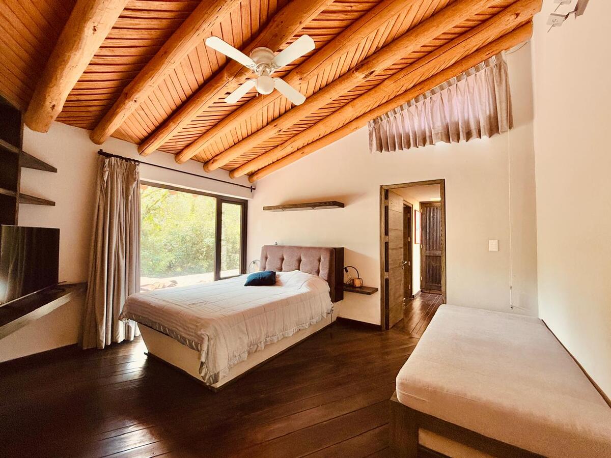 La casa, en impecable estado de conservación y con acabados de alta calidad, se distribuye en dos plantas y una casita anexa, ofreciendo amplios espacios para el disfrute familiar y el entretenimiento. Casa principal en planta baja cuenta con una sala de doble altura, comedor con parrilla, cocina equipada, terraza techada con sala y desayunador, veranda con jacuzzi y horno de leña, estudio con opción a recámara y una recámara principal con balcón y vista al río. Una cava subterránea añade un toque de sofisticación.