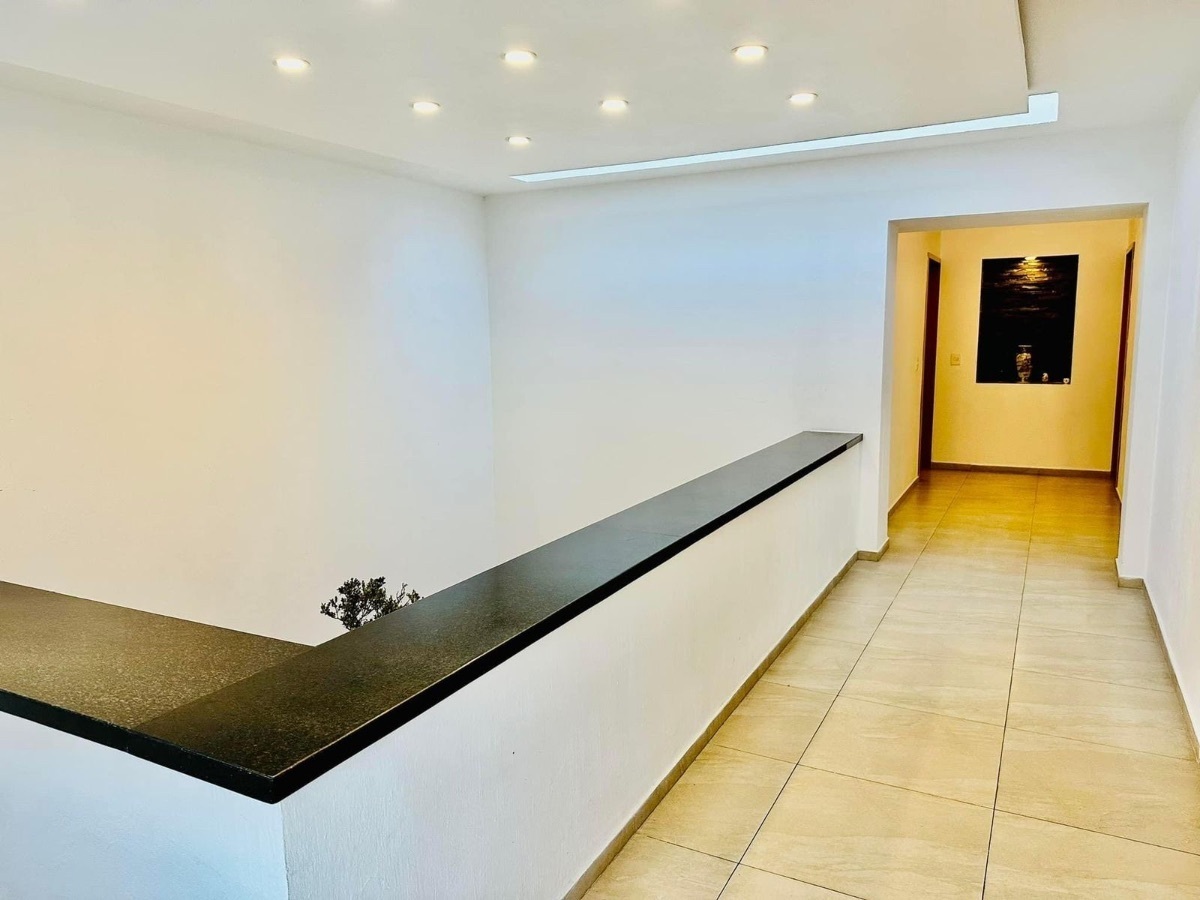 Primer Nivel: En el recibidor tienes un gran e iluminado acceso a doble a altura en armonía con el resto de áreas ya que sus distribuidores son amplios, una espaciosa sala con con chimenea A/A (caliente ó frió) y espectacular vista panorámica, ante sala, medio baño, cantina-bar, bodega, área de servicio, patio, atractiva caba de vino en sótano,gran área de comedor para 10 personas, cocina integral equipada con terminados en alto brillo y cubiertas de granito negro con isla, en exterior un amplio pasillo con cristales templados el cual conecta a una gran terraza panorámica.