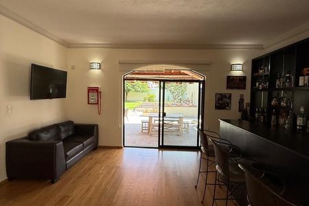 Sala, Comedor con Techos Altos Sala de TV, Cocina con Desayunador Amplio, Vistas al Jardin.