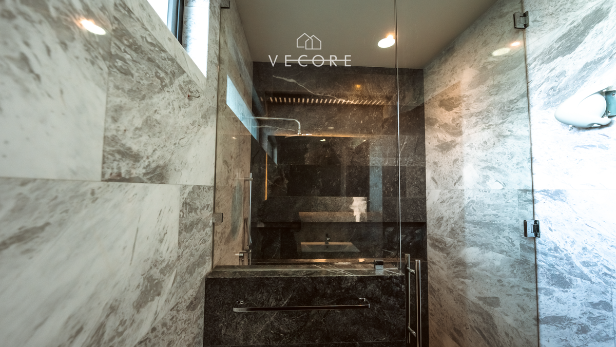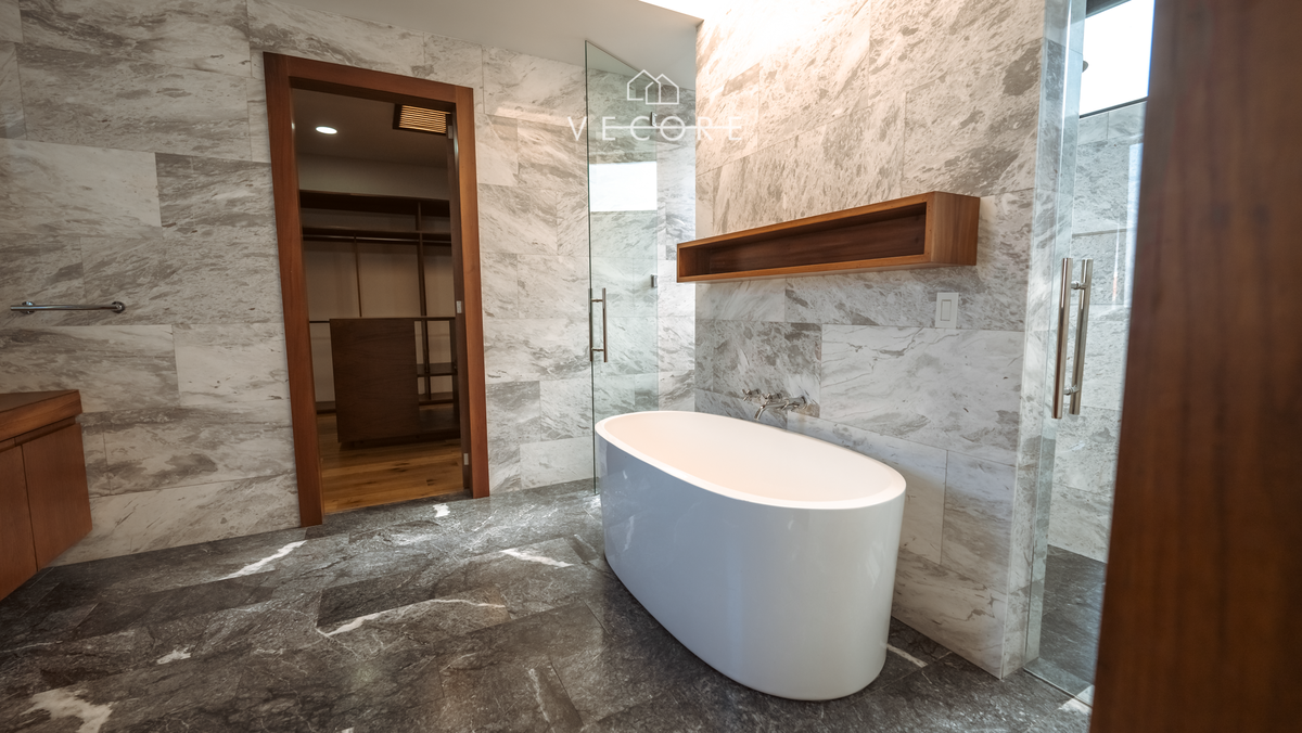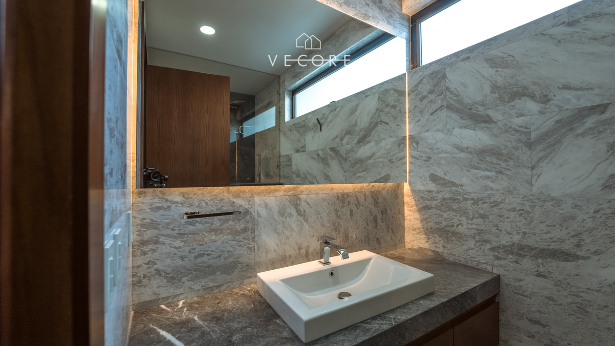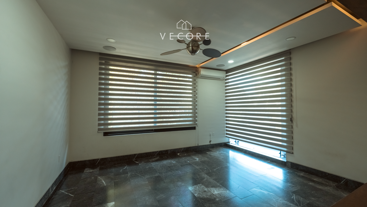 Recámara principal con walking closet y baño completo, y bocinas empotradas en plafón