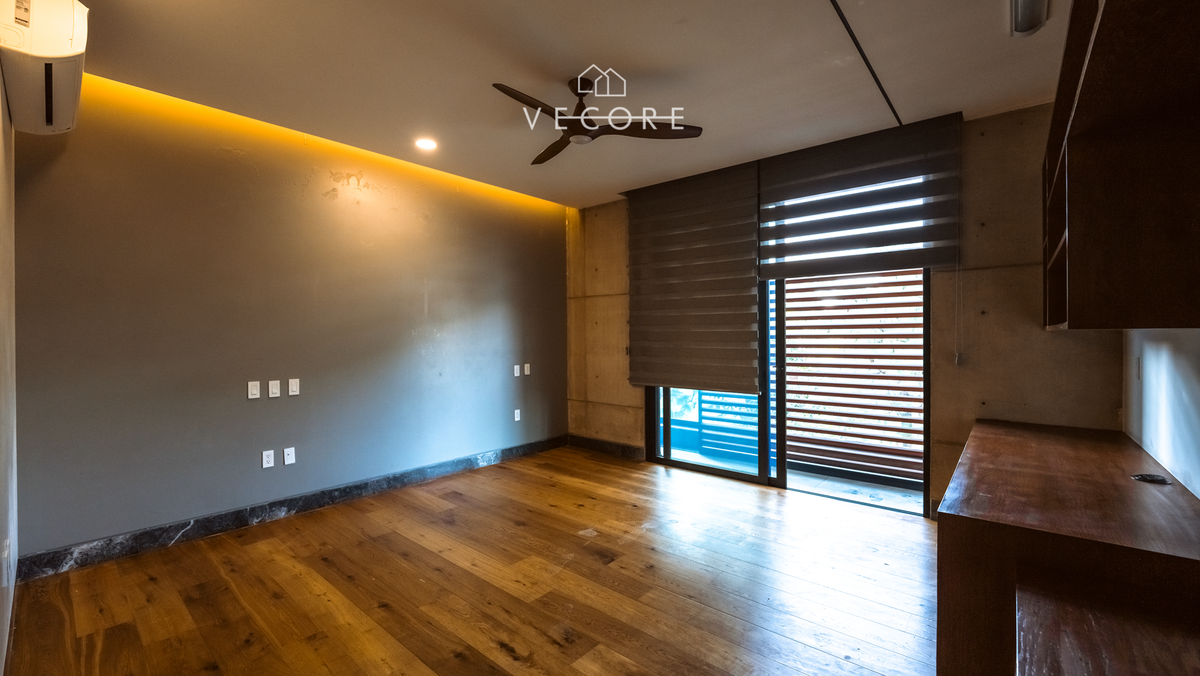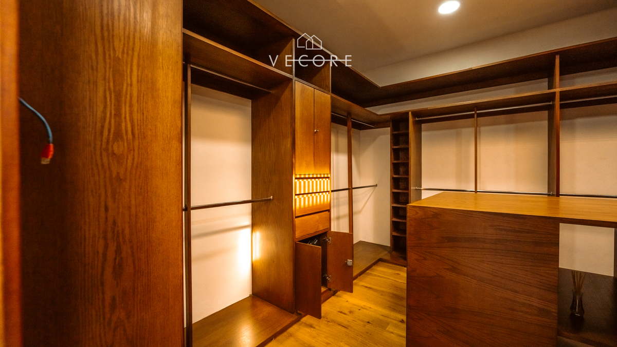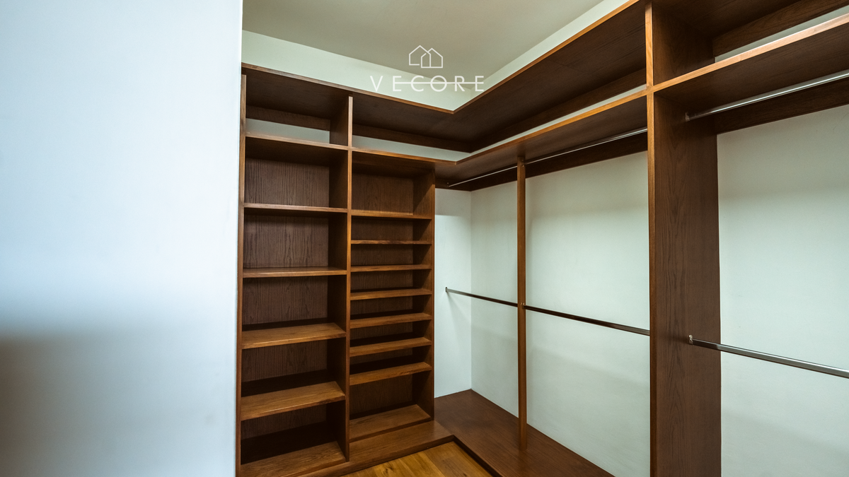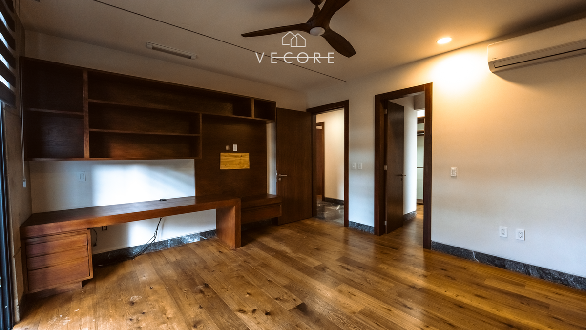 Muebles empotrados en madera encino americano en todas las recamaras, oficinas, areas de tv y terraza