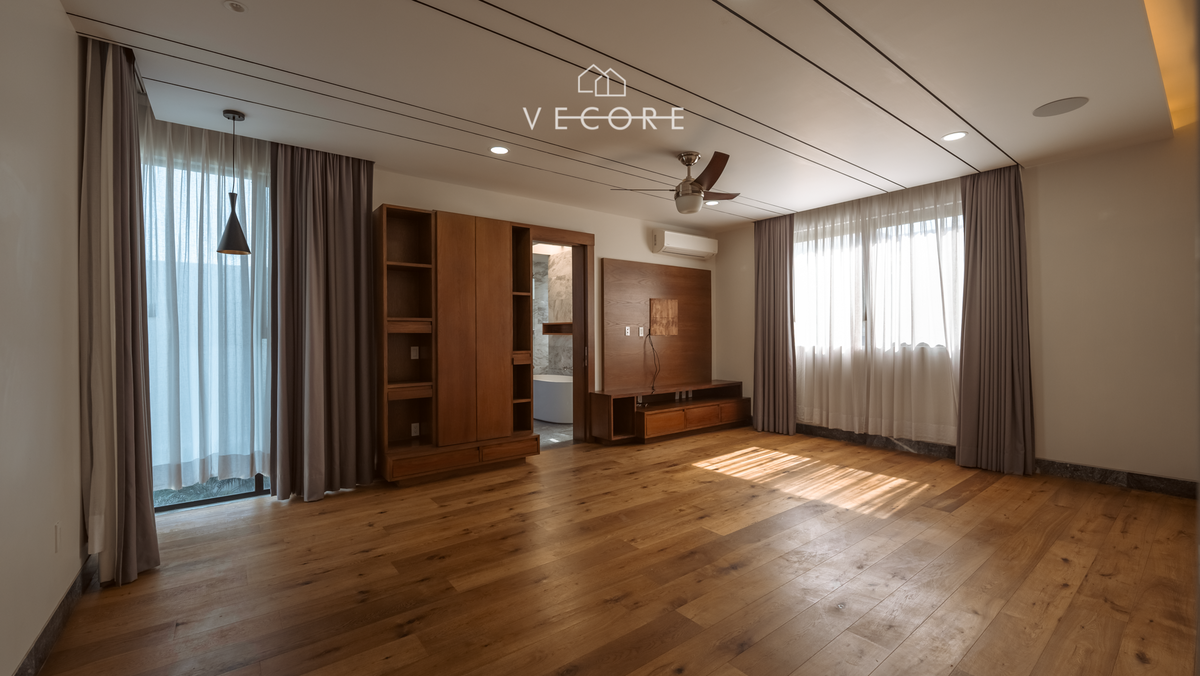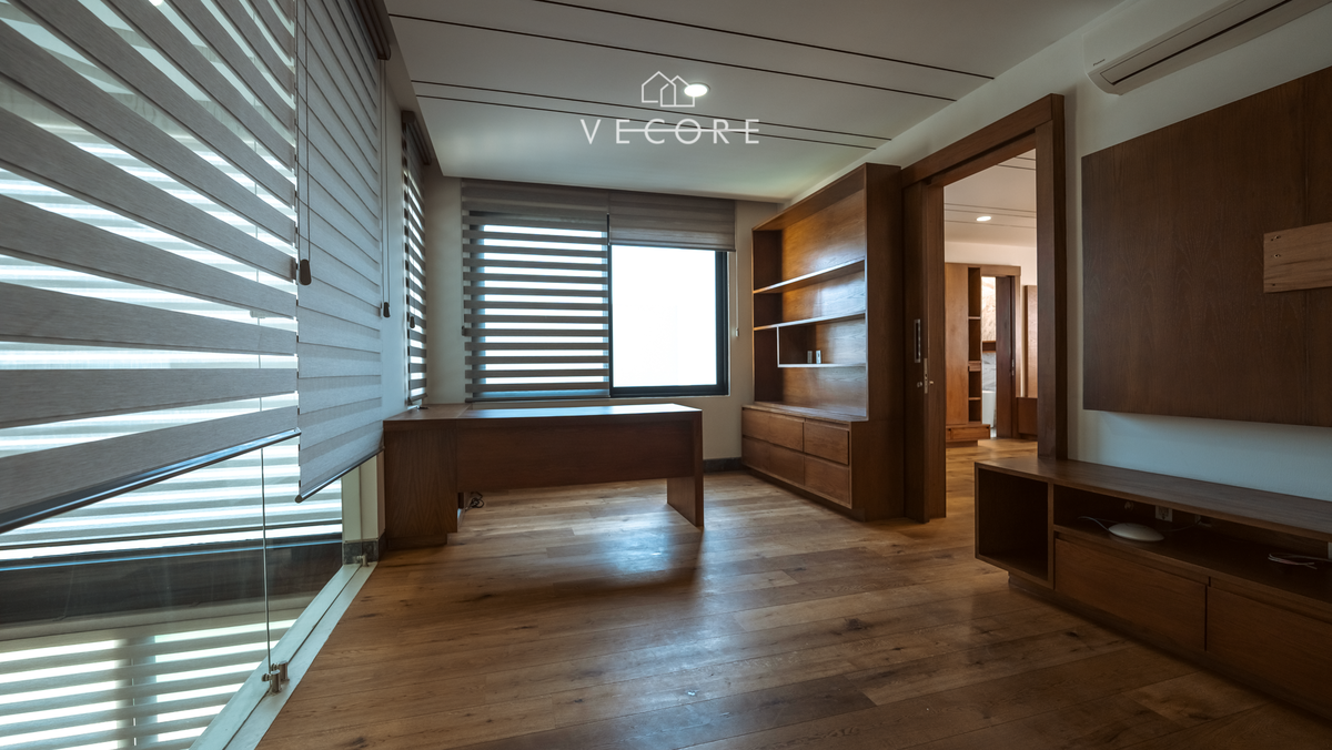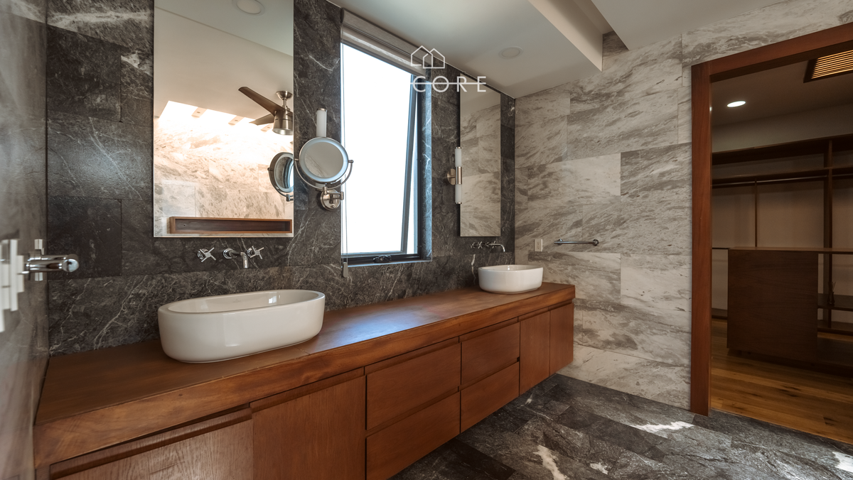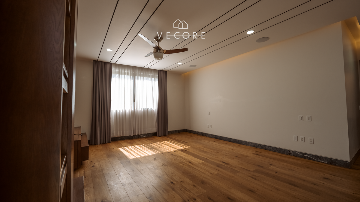 Muebles empotrados en madera encino americano en todas las recamaras, oficinas, areas de tv y terraza