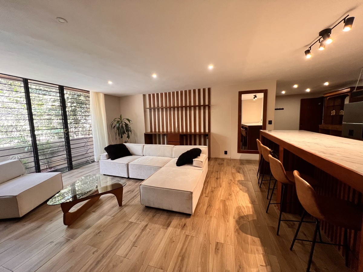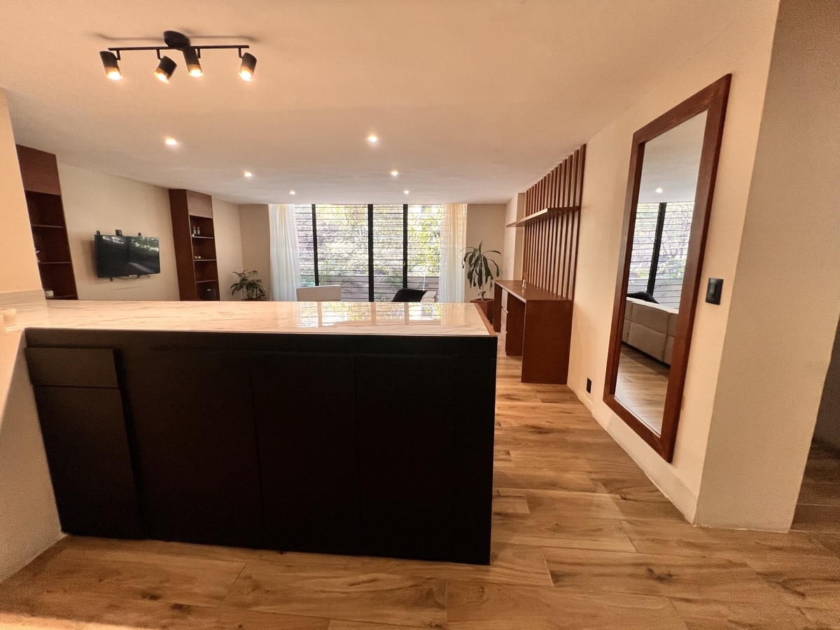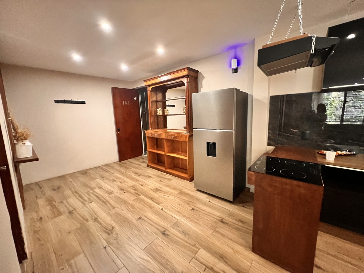 Todos os serviços incluídos: água, luz, internet, TV a cabo IZZI.Departamento amoblado con balcón en venta Una recamara amplia con closet y balcón, Cocina abierta con barra, equipada con refrigerador, estufa, horno microondas , amplio salón muy iluminado con terraza.