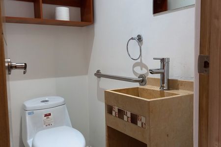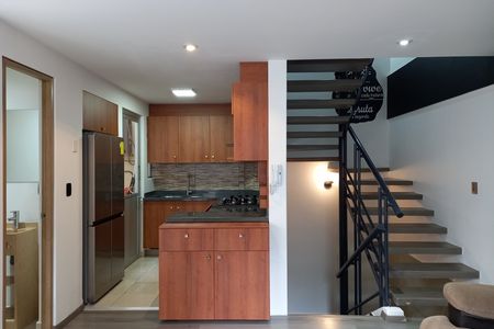 Cuenta con una amplia recámara, 2 baños completos, estancia con cocina abierta, un recibidor, área de lavado, un espectacular roof-top de 100 m2 con pérgola y equipado con tarja y parrilla para disfrutar los días soleados, un estacionamiento, privado y vigilancia las 24 hrs.