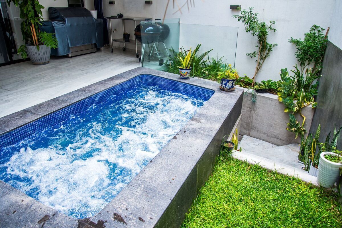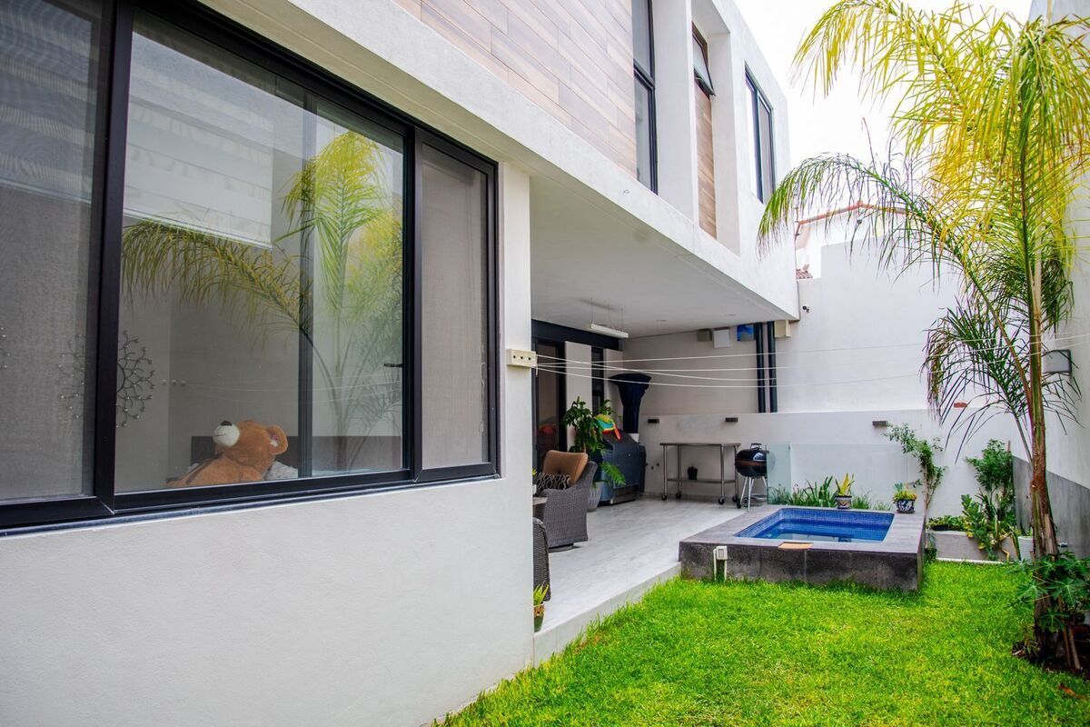 Residencia muy amplia y confortable con Amplia Sala Comedor, Cocina Integral, Recámara de Visitas en PB. Jardín trasero con Jacuzzi Climatizado, 1 Baño completo de visitas, Cuarto de lavado, Amplias bodegas,.
