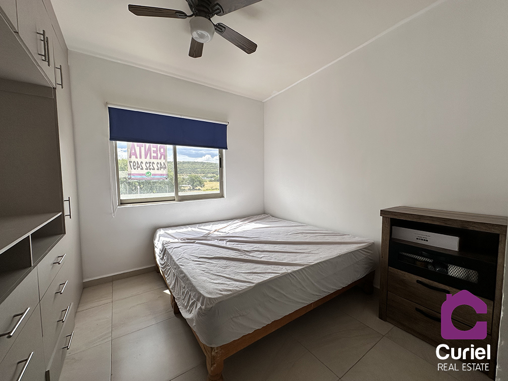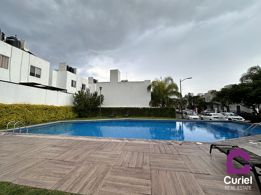 Se renta casa semi amueblada en Querétaro Cd del Sol casa en condominio con vigilancia 24 horas, alberca, palapa, área verde, aparatos para hacer ejercicio. Ac tan solo 15 min del parque industrial Benito Juárez, muy cerca del libramiento surponiente, muy buena ubicación, a tan solo 15 min de juriquilla y Antea.