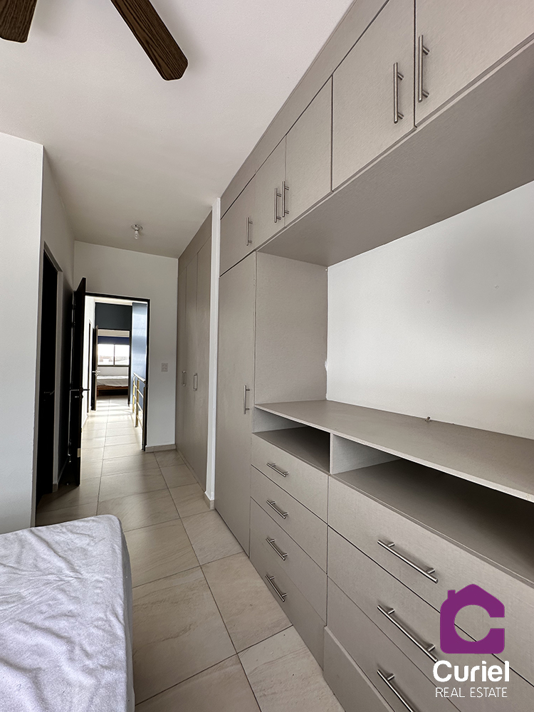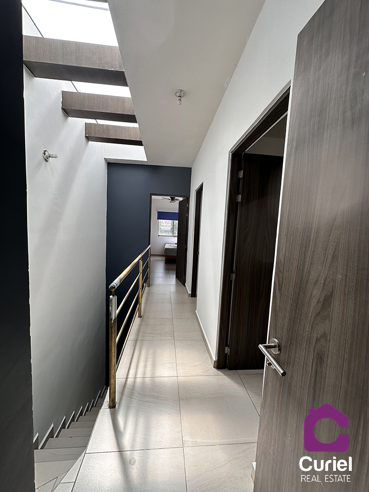 La casa se renta parcialmente amueblada cuenta con tres recamaras, la principal con baño y closet muy amplio así como ventilador de techo, las recamaras secundarias comparten baño completo, en planta baja sala comedor, cocina integral abierta con refrigerador, aire acondicionado, medio baño de visitas patio trasero con área de lavado (lavadora funcionando).