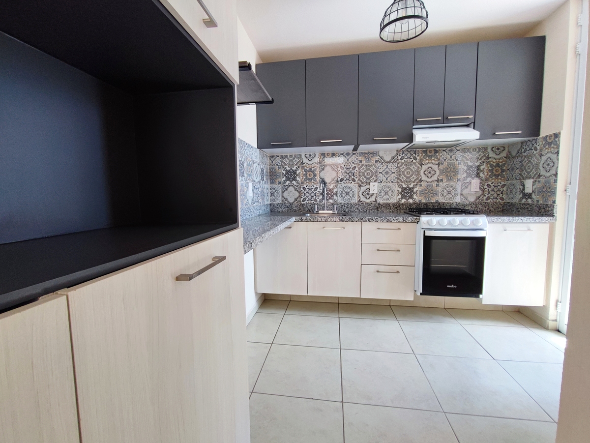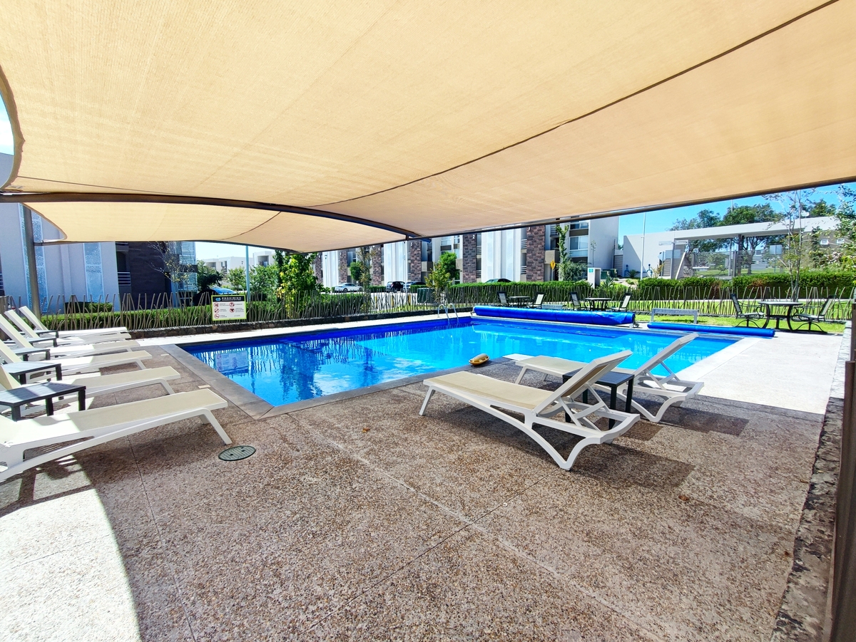 Lindo departamento totalmente equipado con canceles, persianas, mosquiteros en la entrada de ZAKIA. Privada con alberca y juegos infantiles (primer nivel, uno arriba de planta baja)