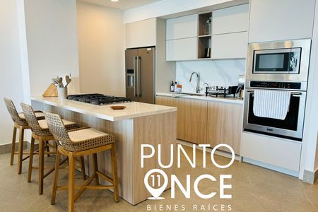 La cocina está totalmente equipada con torre de hornos, refrigerador, doble tarja y finos acabados, perfecta para quienes disfrutan de los detalles y la practicidad.