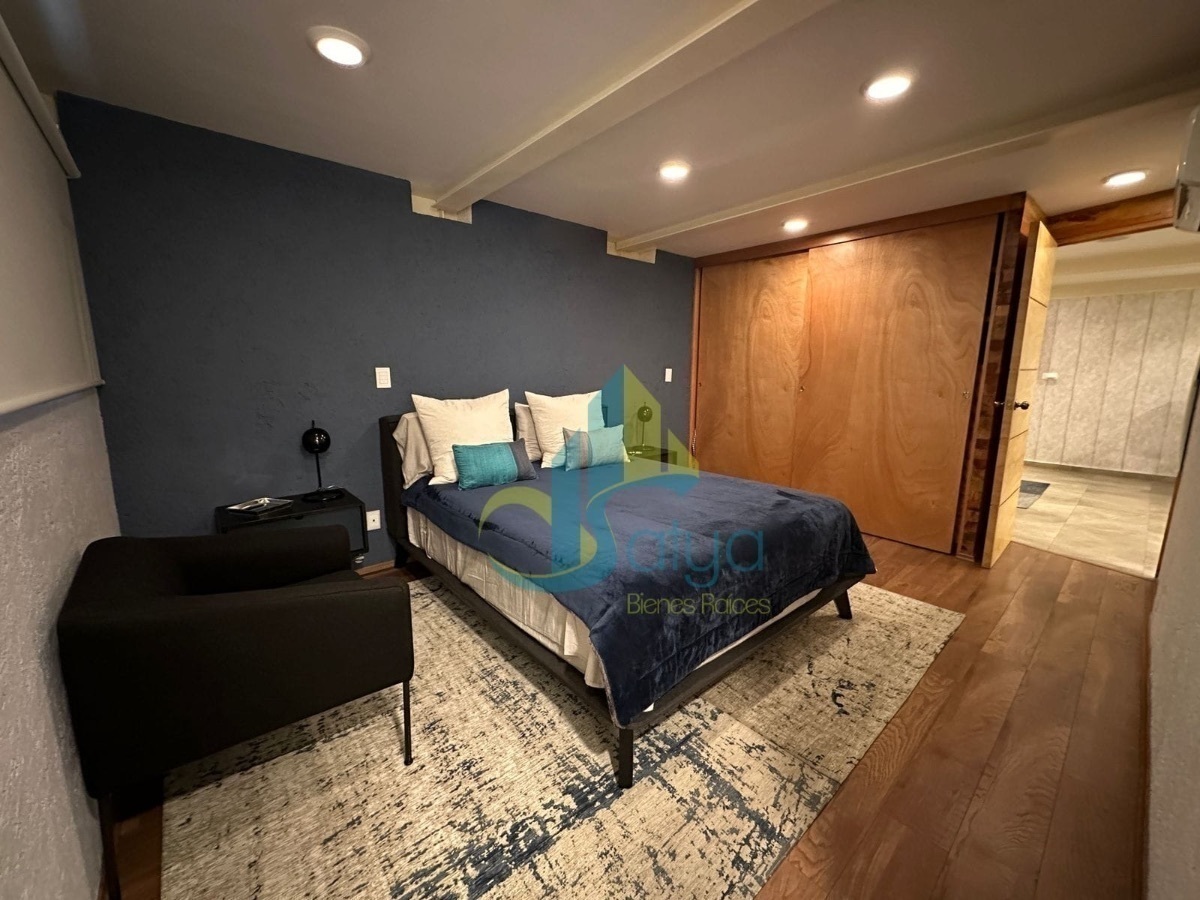El departamento tiene una área grande con baño completo en la parte baja del departamento que puede utilizarse como estudio.