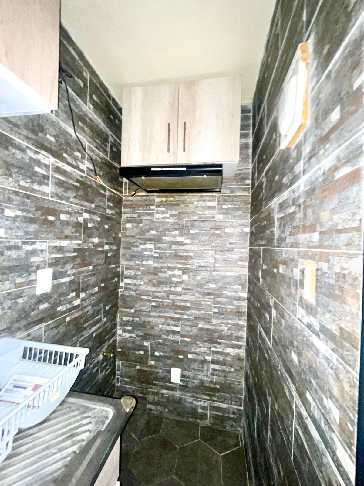 Estancia/antecomedor/cocina con tarja y mueble despensero.