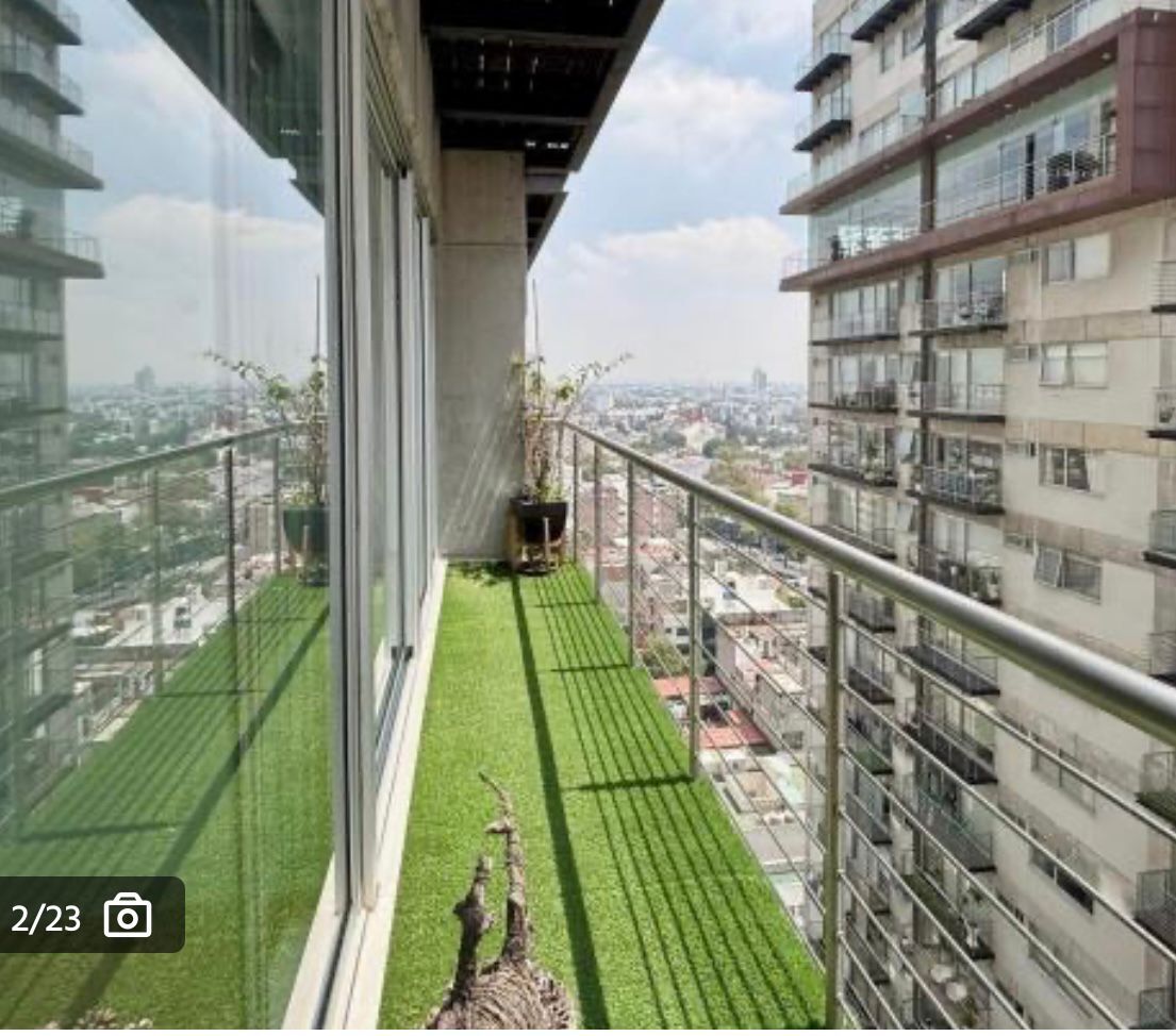 Rento hermoso e iluminado departamento en Grand Tower del Valle, 2 recámaras, 2 baños, 2 estacionamientos, con balcón, piso 15