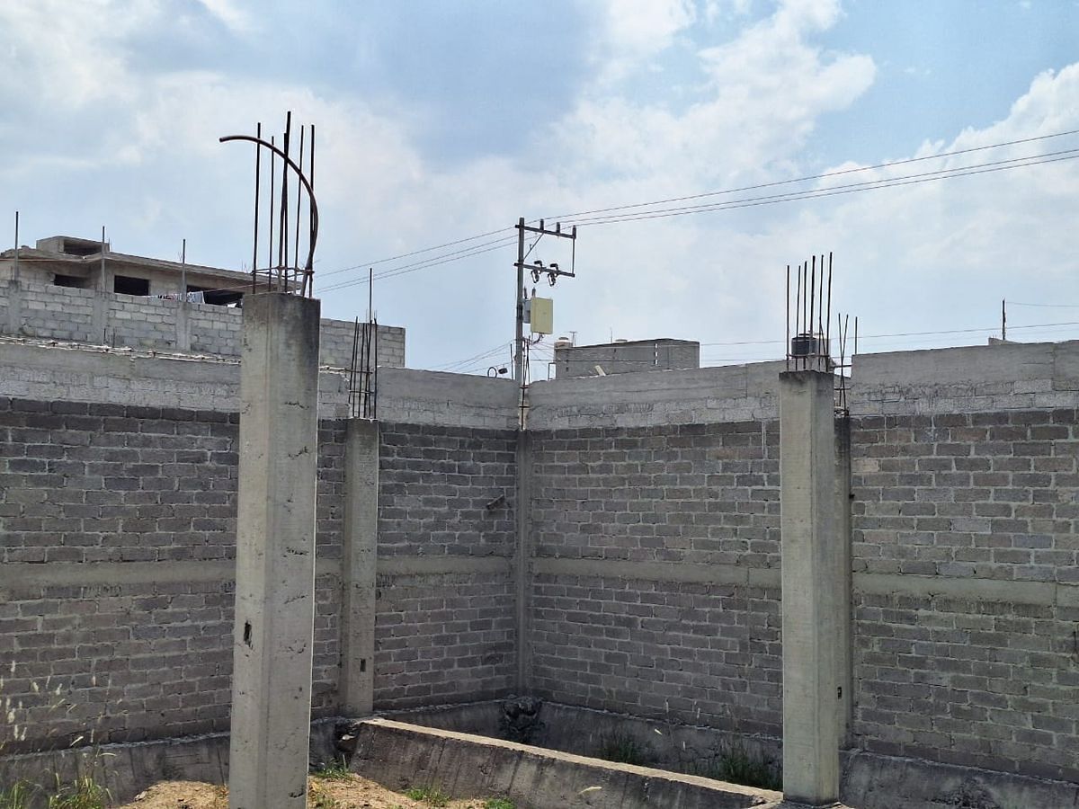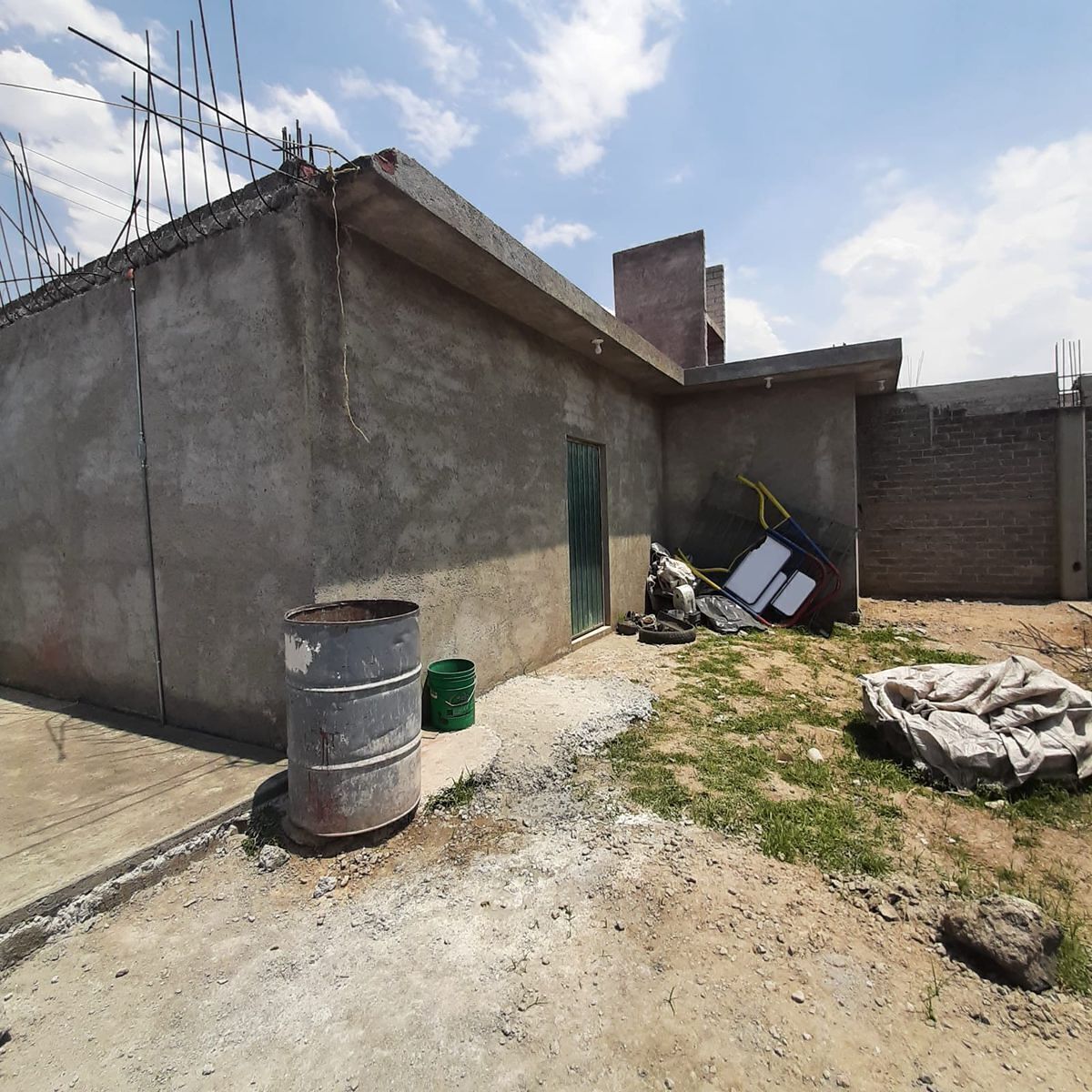 Cuenta con Barda Perimetral , Cimientos , una accesoria, un baño, patio, agua , drenaje , se pueden estacionar dos carros y la luz puede contratarse.