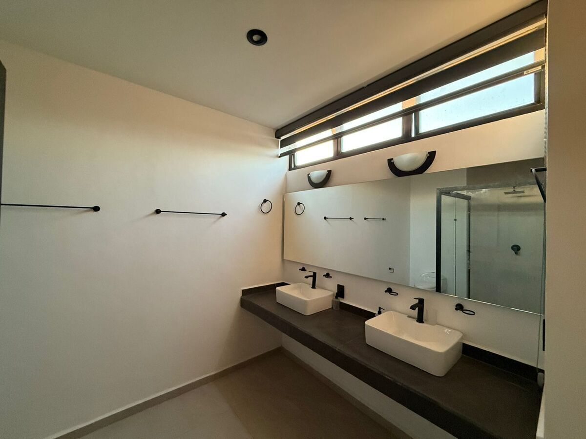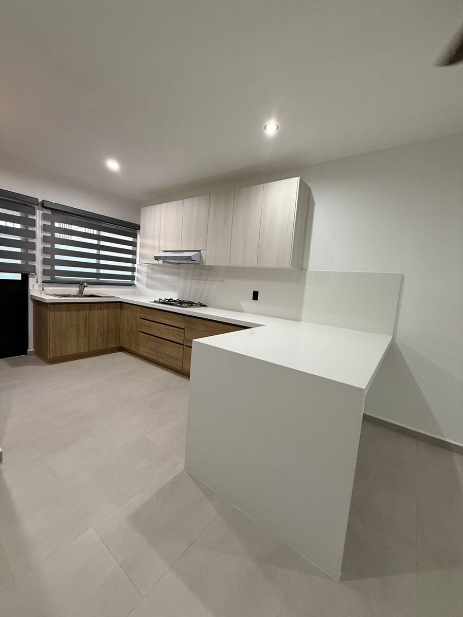La casa está equipada con cocina integral, cortinas, canceles para baño y espejos y closets en todas las habitaciones