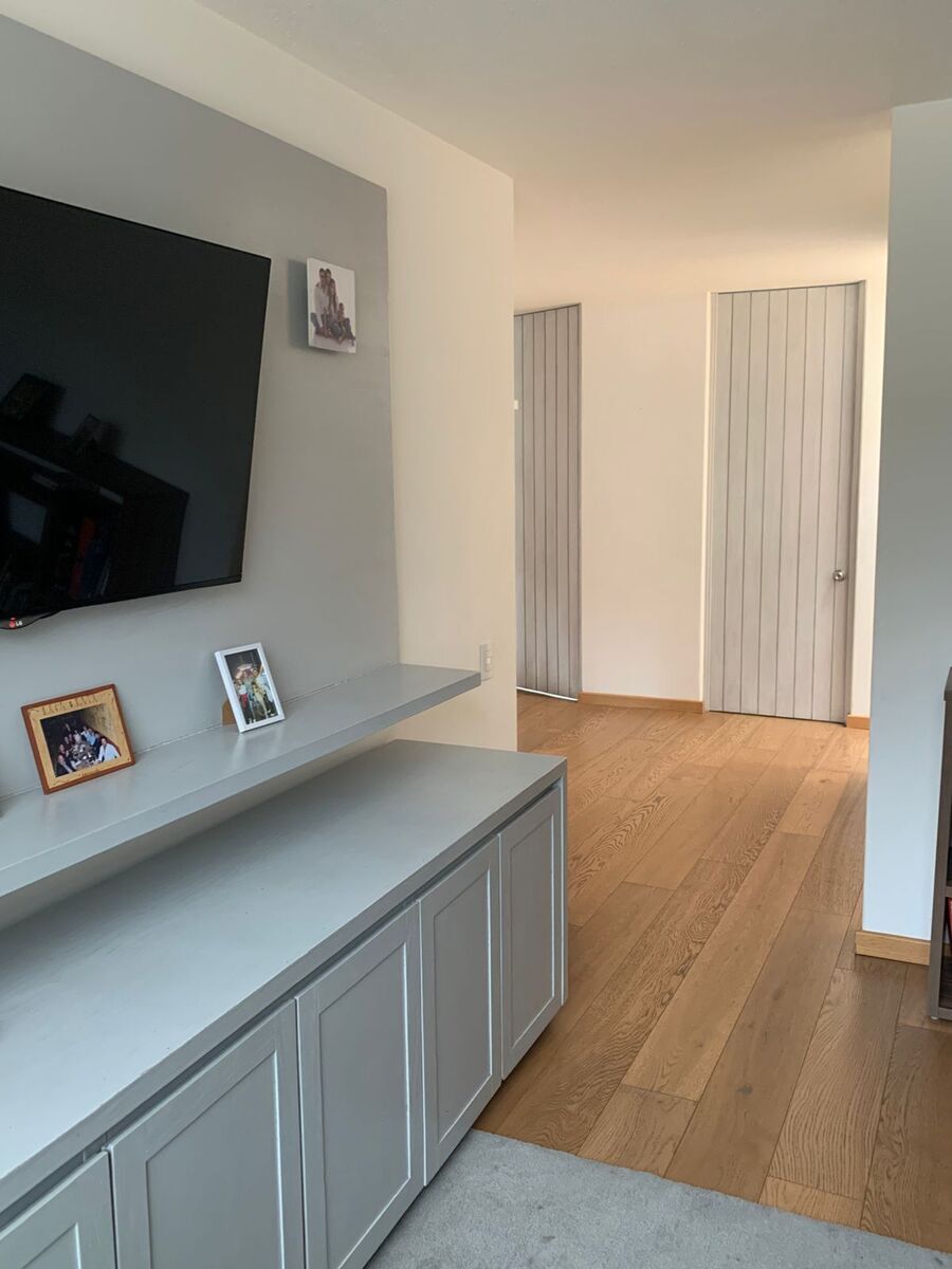 Tiene un family en la zona de las recámaras y en el piso de arriba tiene un espacio que puede hacer la función de estudio u oficina, el cual cuenta con un gran tapanco que puede funcionar como bodega.