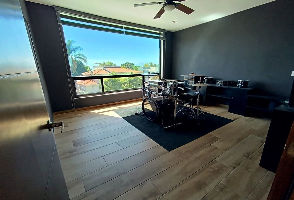 Cuenta con alacena, cuarto de servicio con baño completo y cuarto de lavado. Tiene además un estudio amplio y baño completo (lo cual podría utilizarse como cuarta recámara)