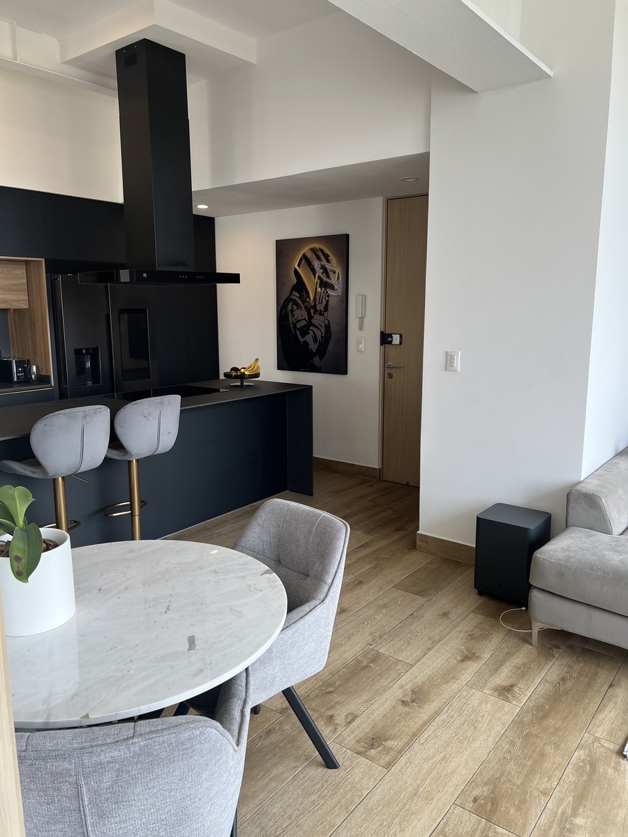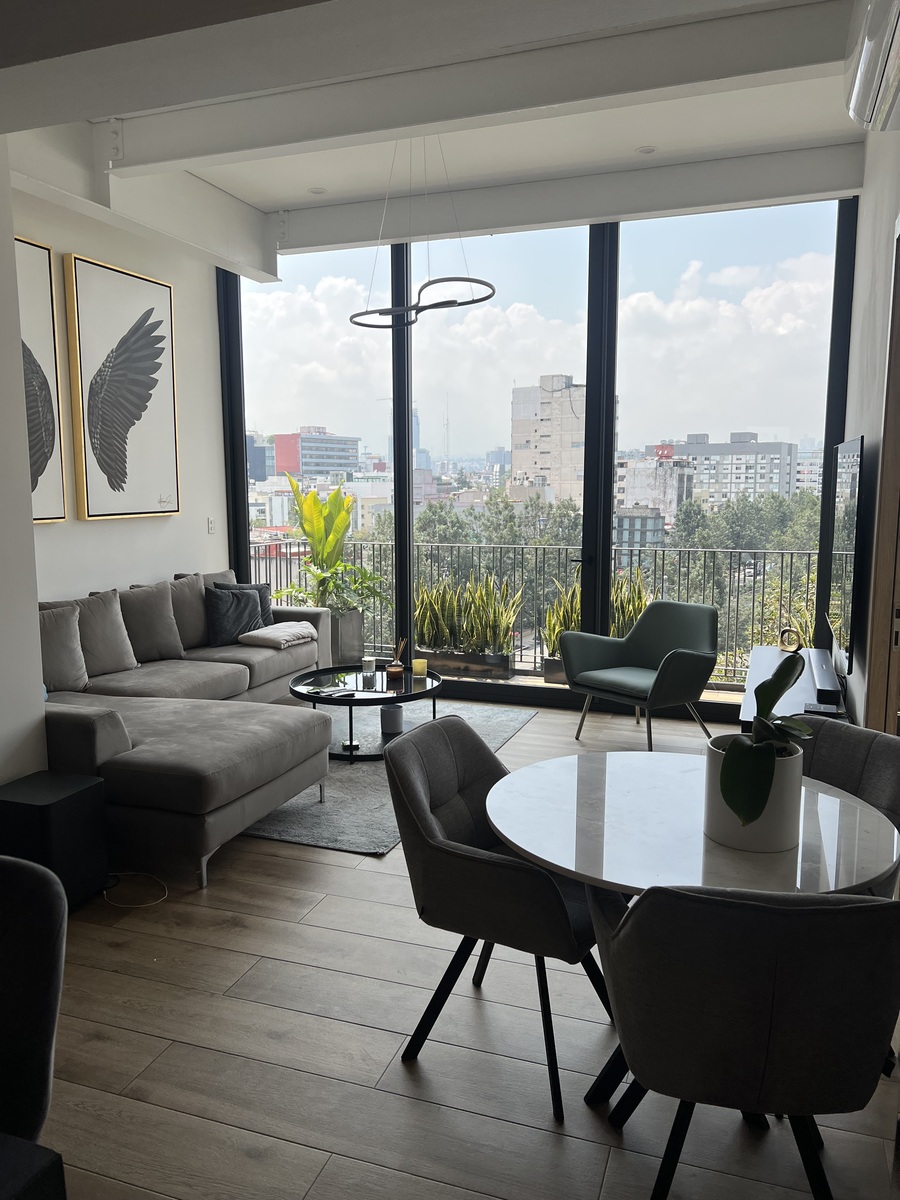 Precioso departamento en la colonia Juárez,, excelentes acabados de alta calidad, edificio prácticamente nuevo, moderno y vanguardista. Cuenta con dos balcones que permitan disfrutar de una vista panorámica, recámara principal con baño, segunda recámara tipo estudio. Todo el departamento está lleno de luz, climatizado con aire acondicionado, el segundo baño da servicio a la recámara secundaria y al departamento, hermosa y equipada cocina. El departamento vende amueblado y equipado como aparece en las fotos, todo con excelente gusto, impecable. Un lugar de estacionamiento fijo sin estorbarse con nadie. Información y citas : Sissi Fialdini 551952-9824